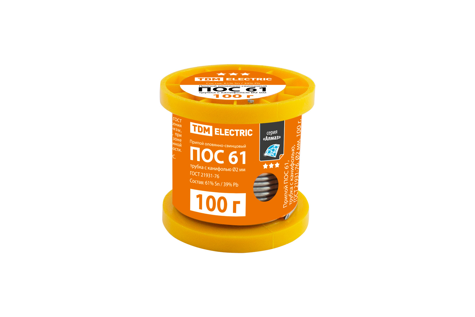 Наименование: Припой ПОС 61, трубка с канифолью, ГОСТ 21931-76, ?2 мм, 100 г, катушка, серия "Алмаз" TDM