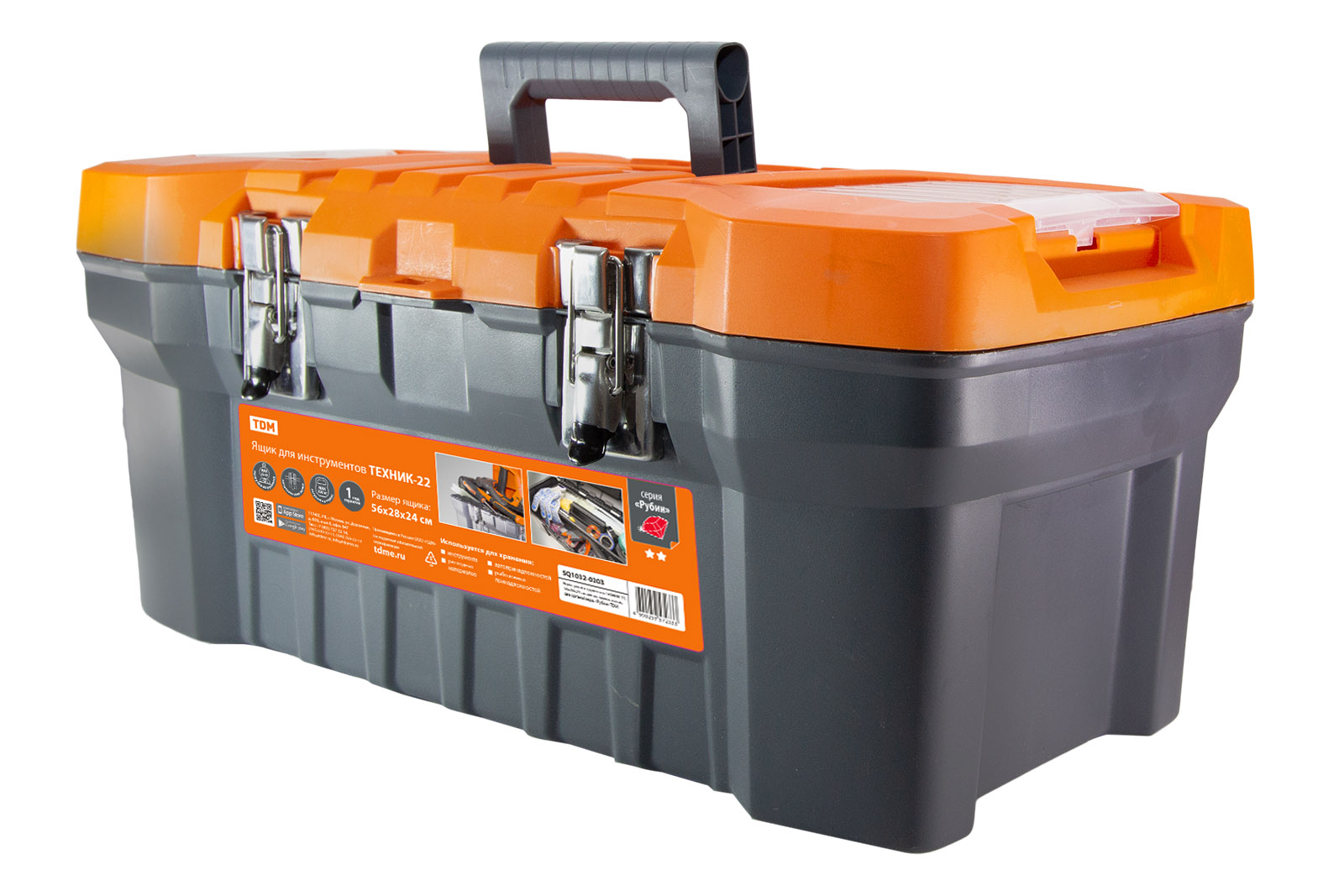 Наименование: Ящик для инструментов ТЕХНИК-22, 56х28х24 см, метал. замки, лоток, два органайзера, «Рубин» TDM