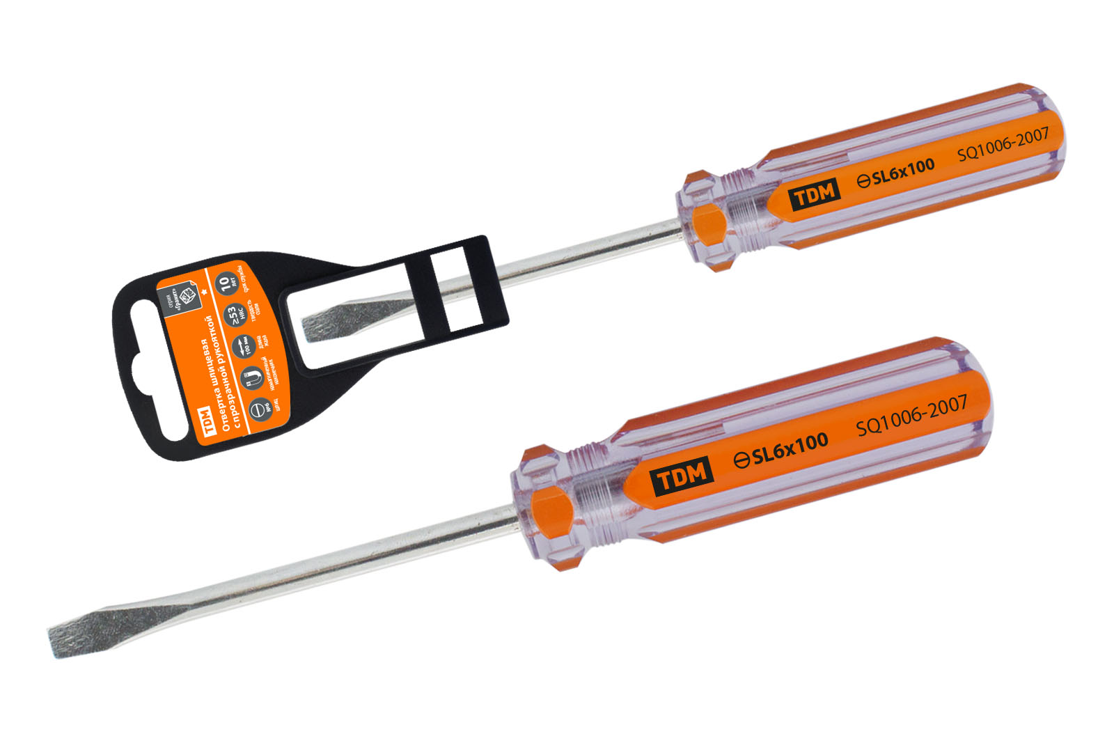 Наименование: Отвертка шлицевая, прозрачная рукоятка, углеродистая сталь, тип SL6.0 x 100 мм, серия "Гранит" TDM