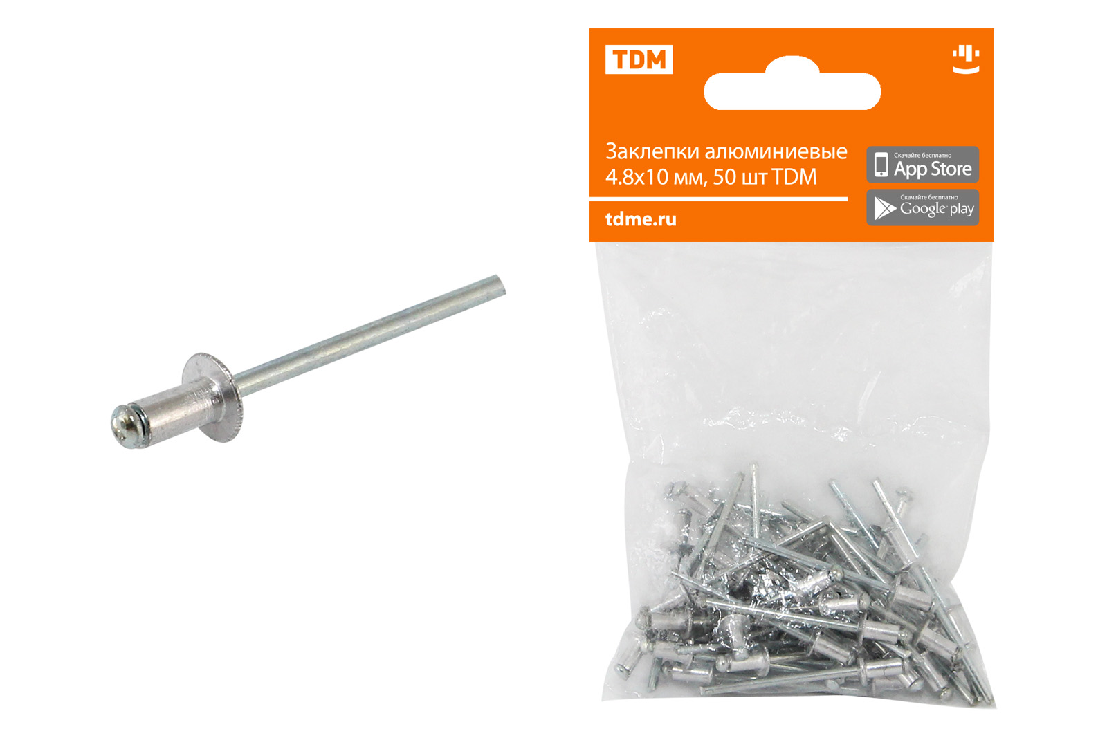 Заклепки алюминиевые 4.8х10 мм, 50 шт TDM