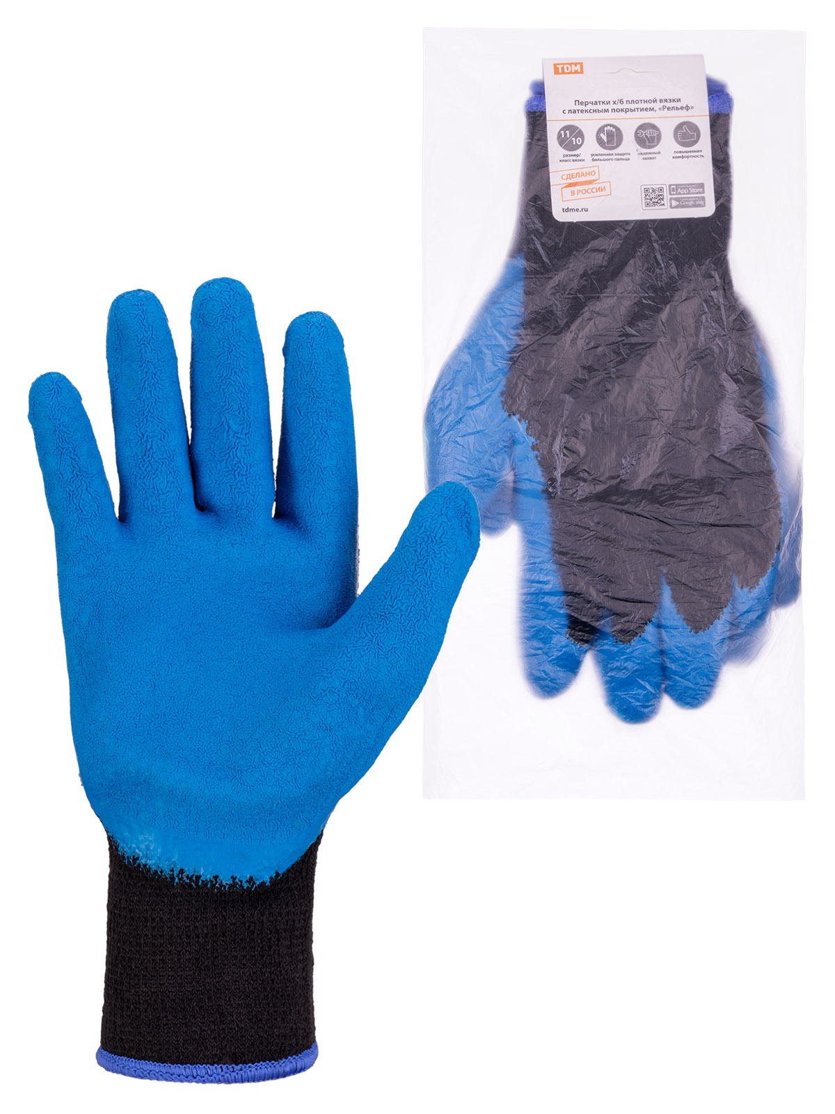 Наименование: Перчатки х/б плотной вязки с латексным покрытием, "Рельеф", черные, 11, 10 кл., 140 г, 1 пара, TDM