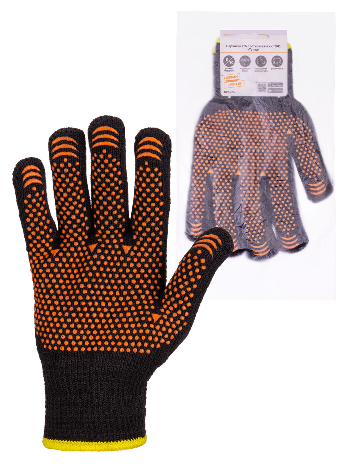 Перчатки х/б плотной вязки с ПВХ, "Точка", черные, 8, 10 кл., 72-75 г, 1 пара, TDM