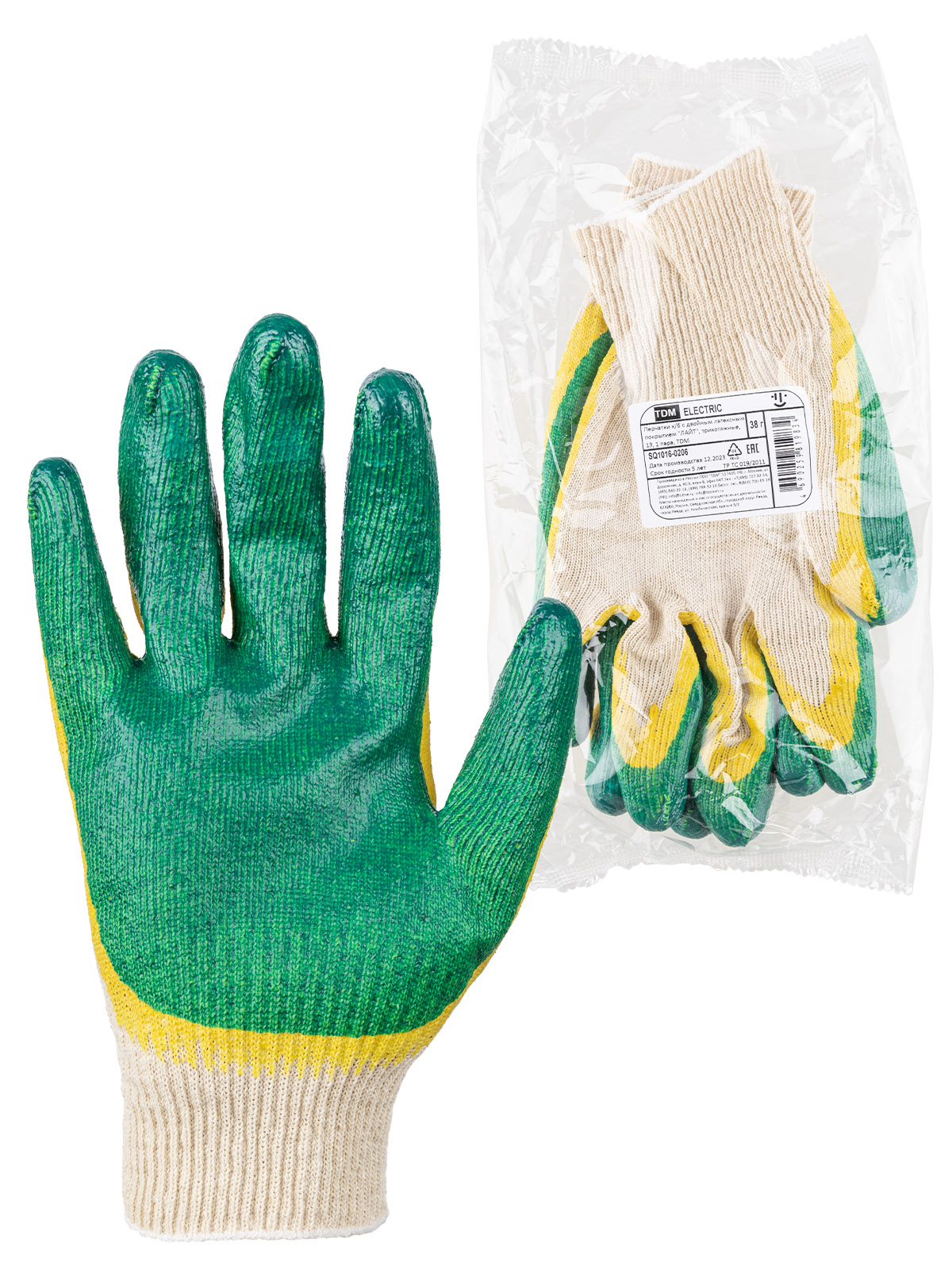 Наименование: Перчатки х/б с двойным латексным покрытием "ЛАЙТ", трикотажные, 13, 1 пара, TDM