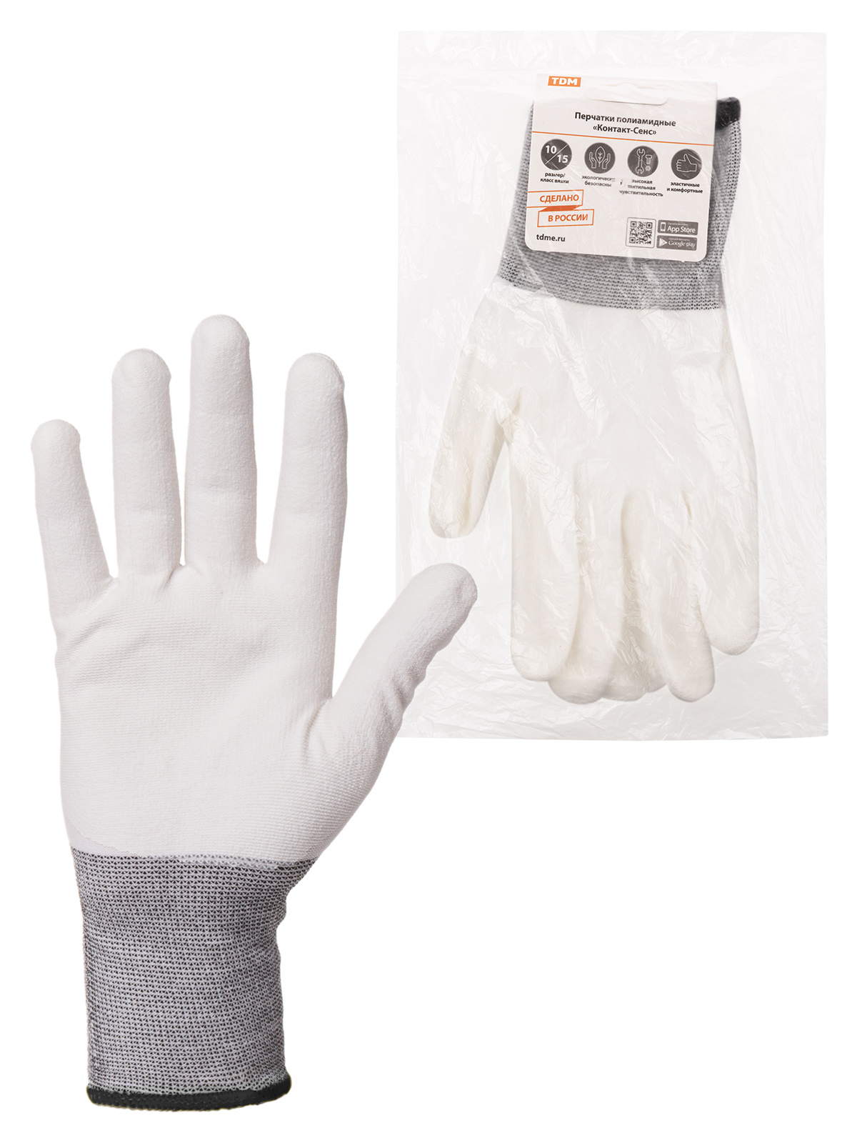 Наименование: Перчатки полиамидные "Контакт-Сенс", полиуретановое покрытие, 10, 15 кл., 32-34 г, 1 пара, TDM