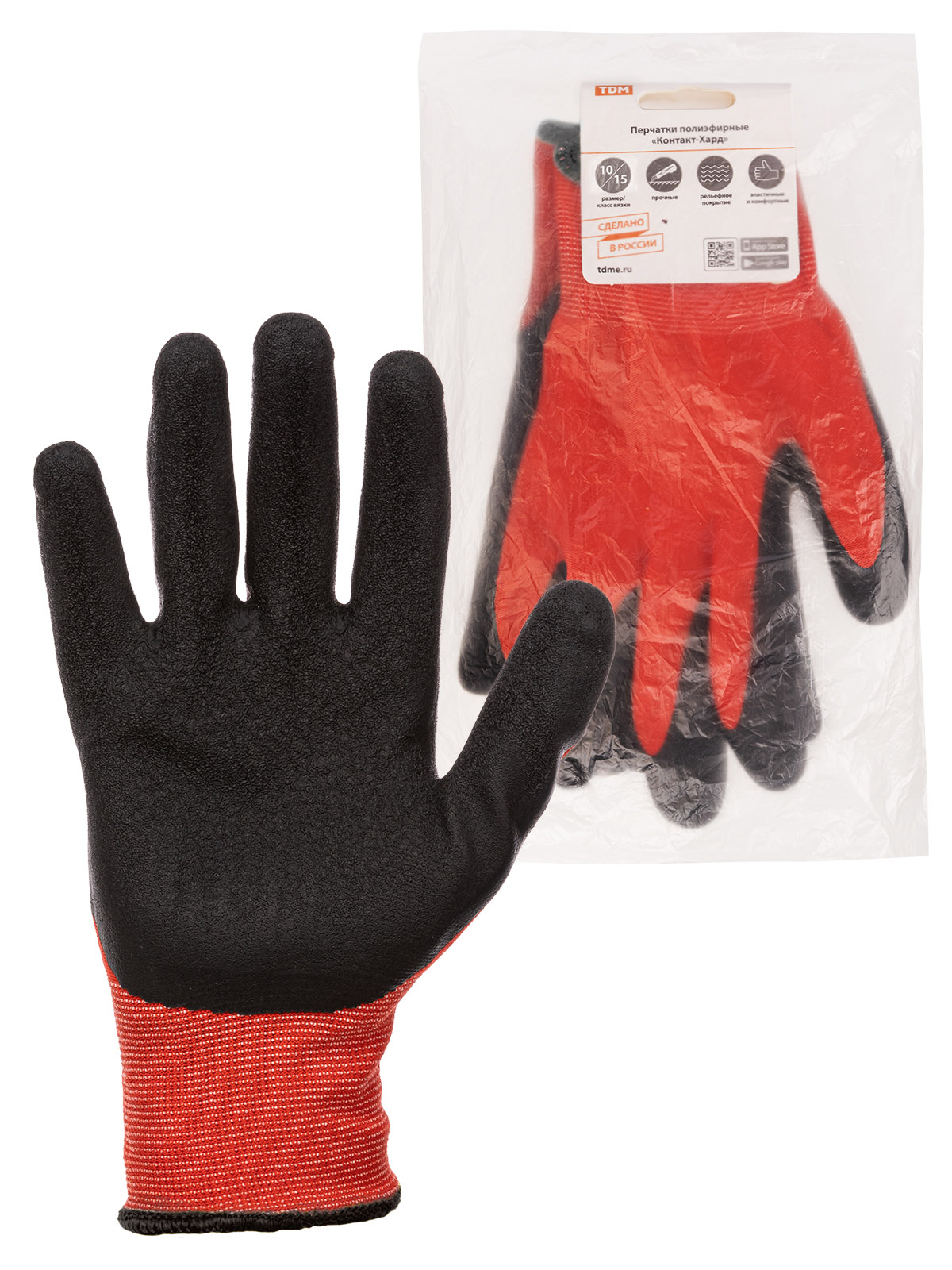 Наименование: Перчатки полиэфирные "Контакт-Хард", рельефное латексное покрытие, 10, 15 кл., 63-65 г, 1 пара, TDM