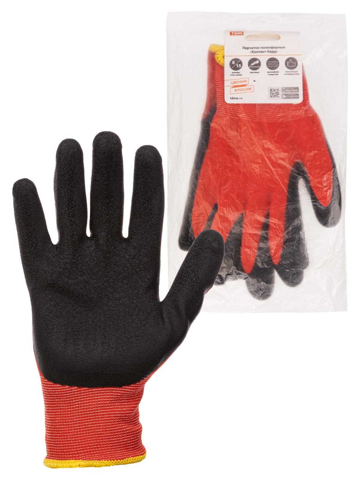 Наименование: Перчатки полиэфирные "Контакт-Хард", рельефное латексное покрытие, 8, 15 кл., 56-57 г, 1 пара, TDM