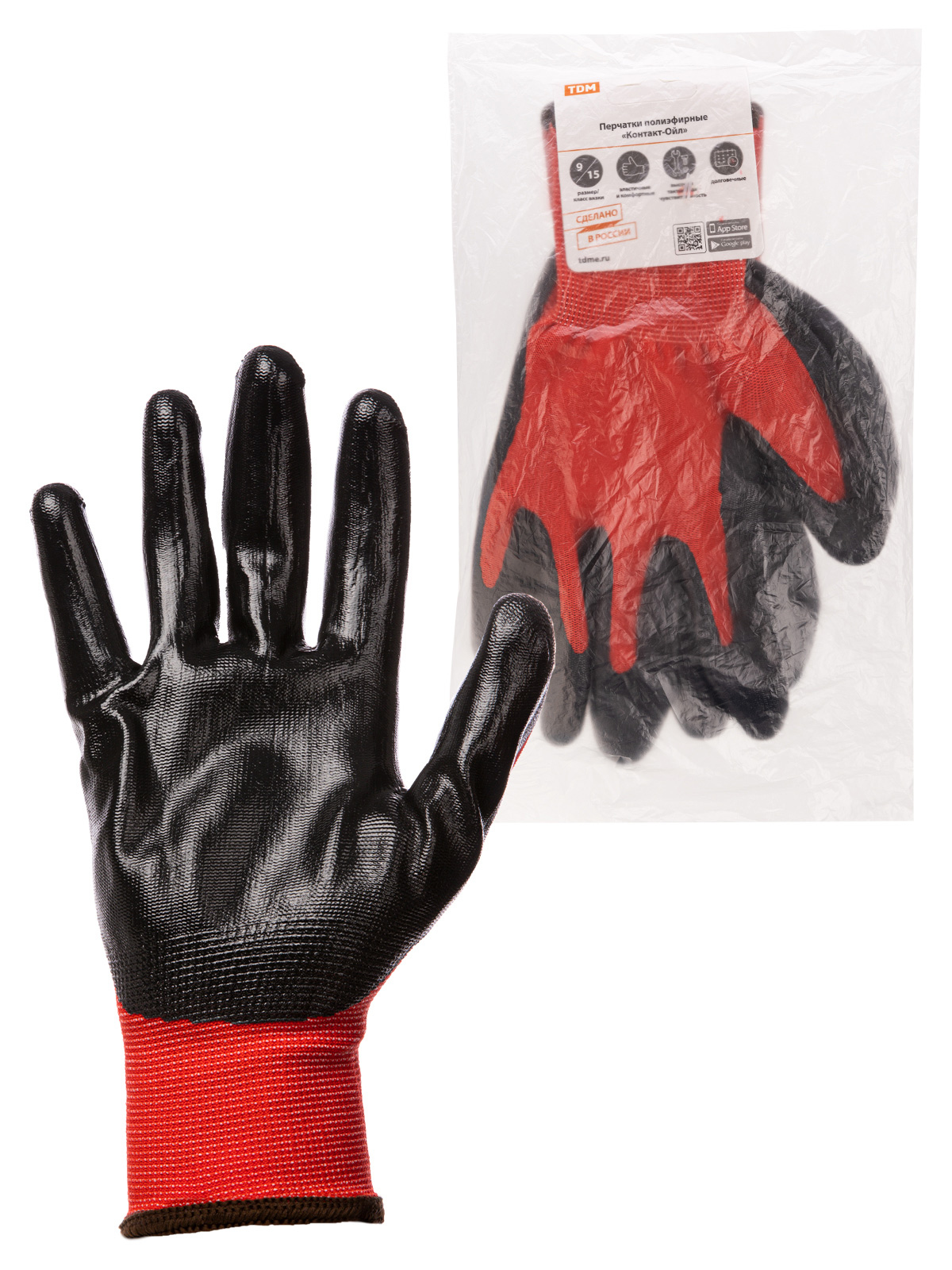 Наименование: Перчатки полиэфирные "Контакт-Ойл", маслобензостойкое покрытие, 9, 15 кл., 42-44 г, 1 пара, TDM