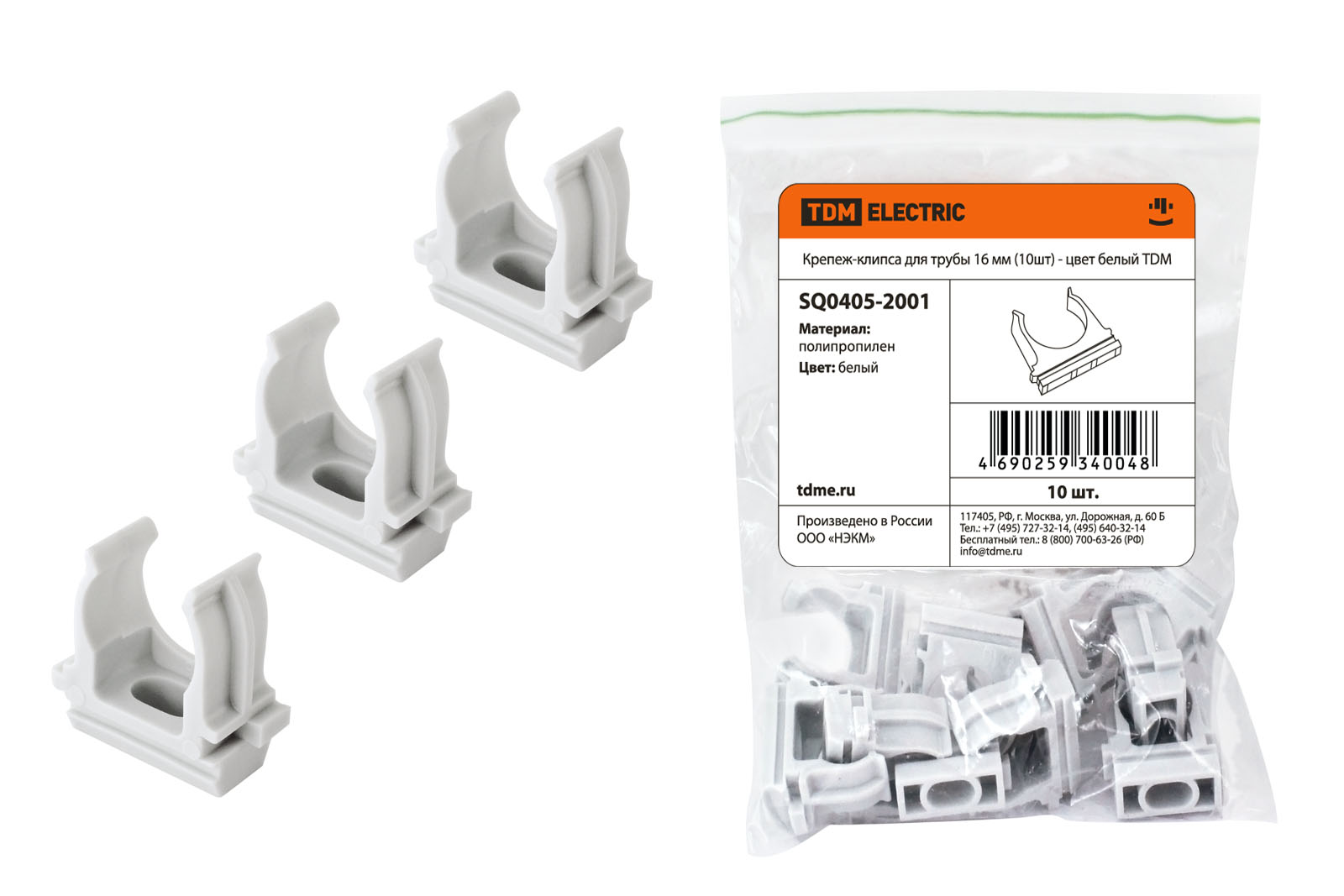 Наименование: Крепеж-клипса для трубы 16 мм (10шт) - цвет белый TDM