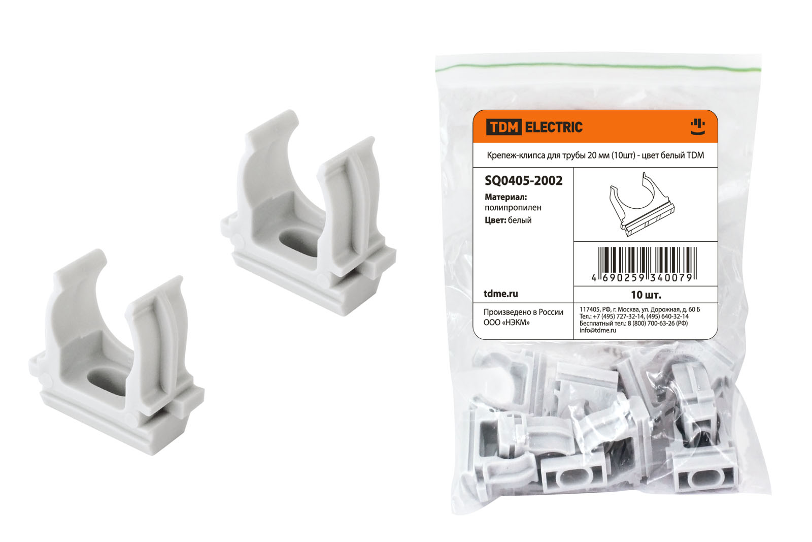 Наименование: Крепеж-клипса для трубы 20 мм (10шт) - цвет белый TDM