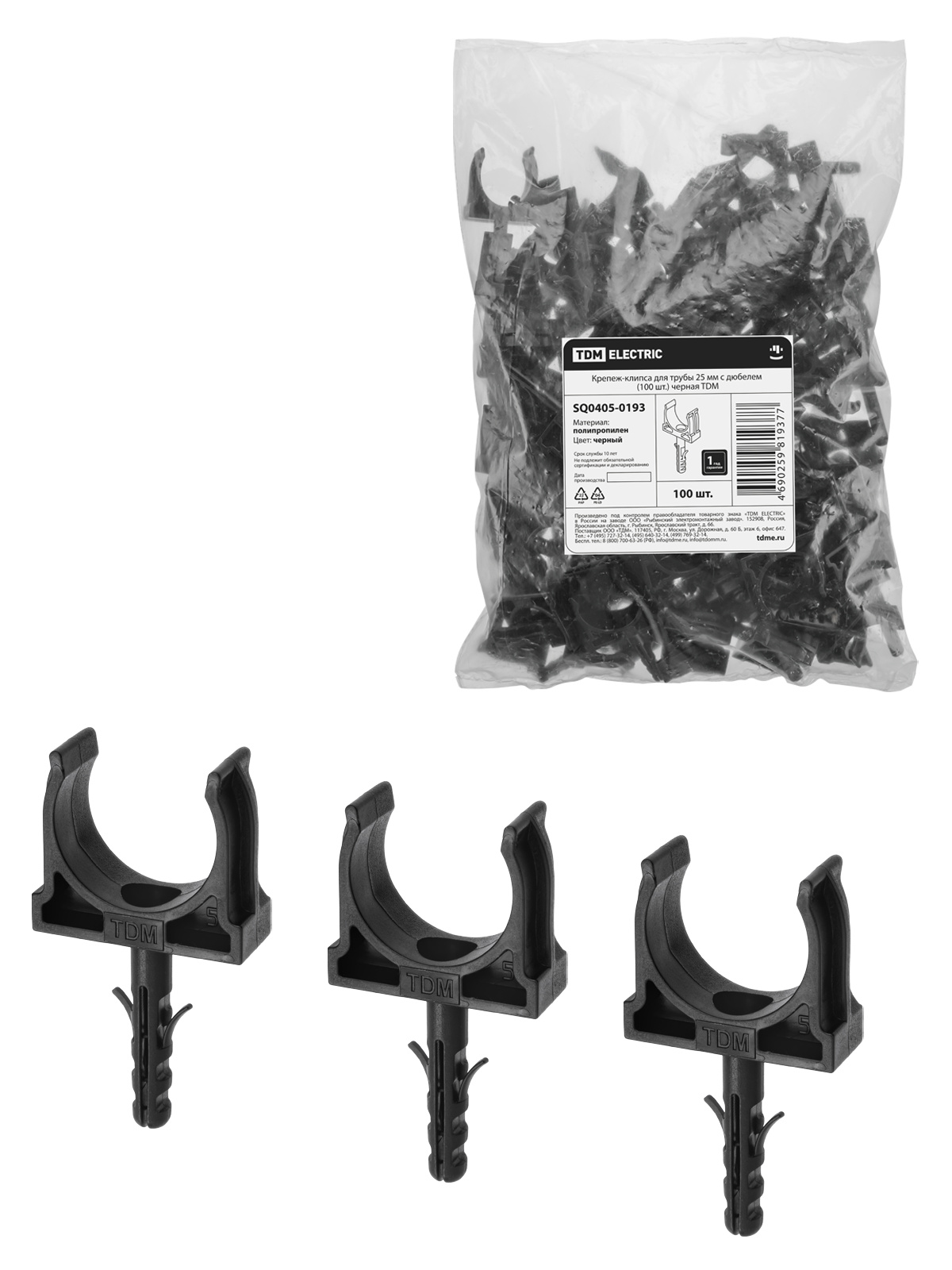 Наименование: Крепеж-клипса для трубы 25 мм с дюбелем (100 шт.) черная TDM