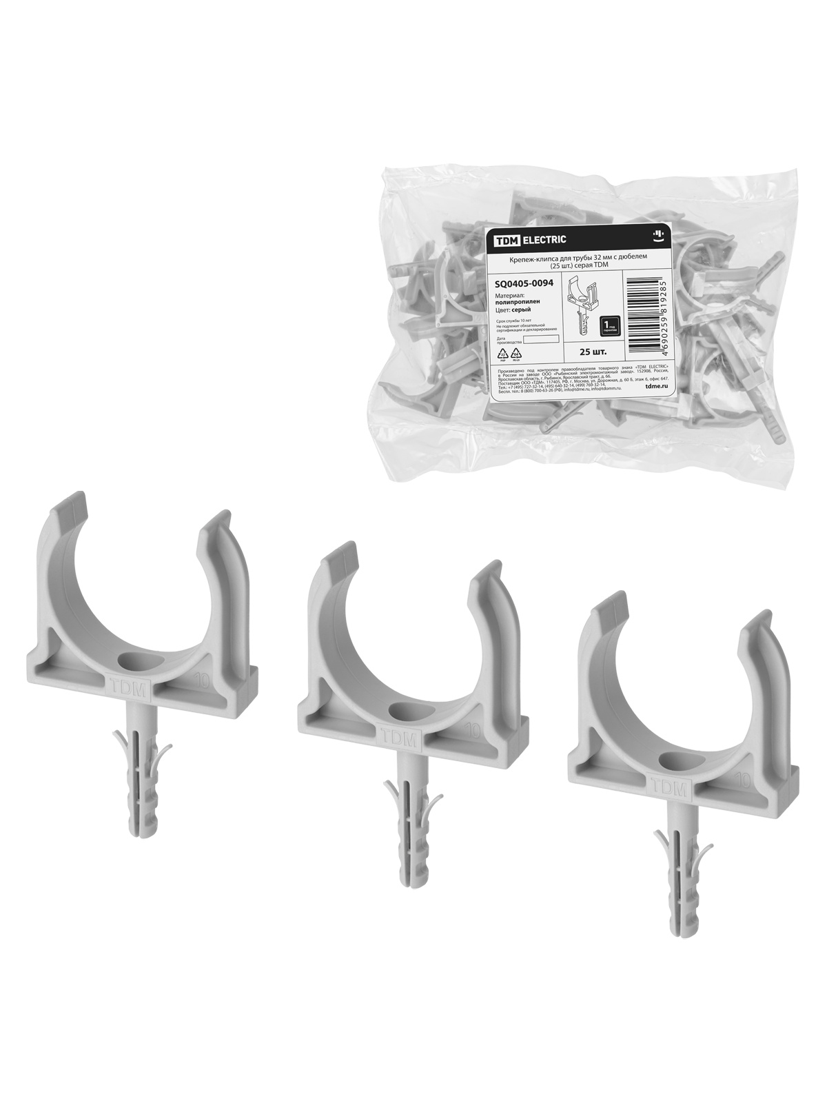 Наименование: Крепеж-клипса для трубы 32 мм с дюбелем (25 шт.) серая TDM