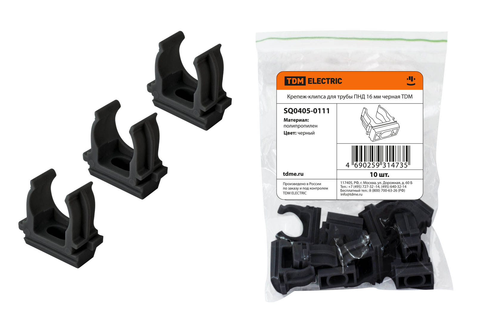 Наименование: Крепеж-клипса для трубы ПНД 16 мм (10 шт.) черная TDM