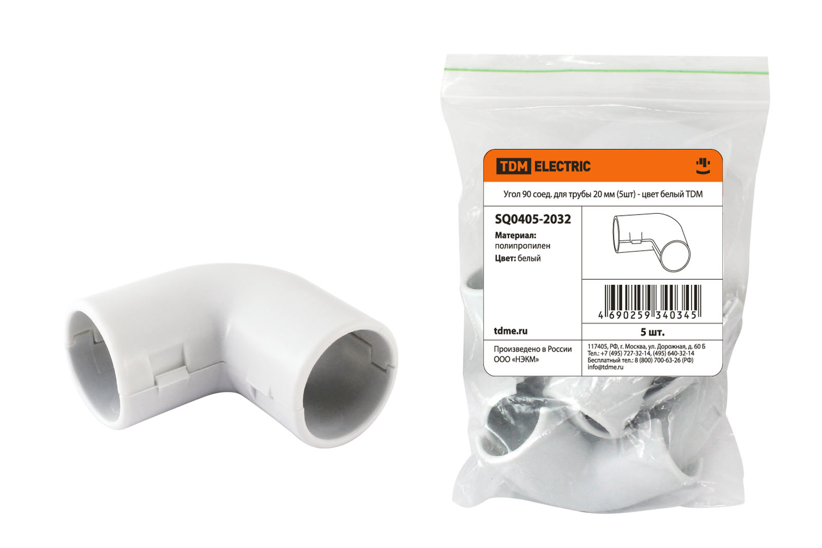 Наименование: Угол 90 соед. для трубы 20 мм (5шт) - цвет белый TDM