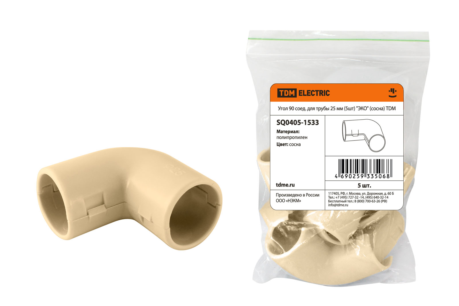 Наименование: Угол 90 соед. для трубы 25 мм (5шт) "ЭКО" (сосна) TDM