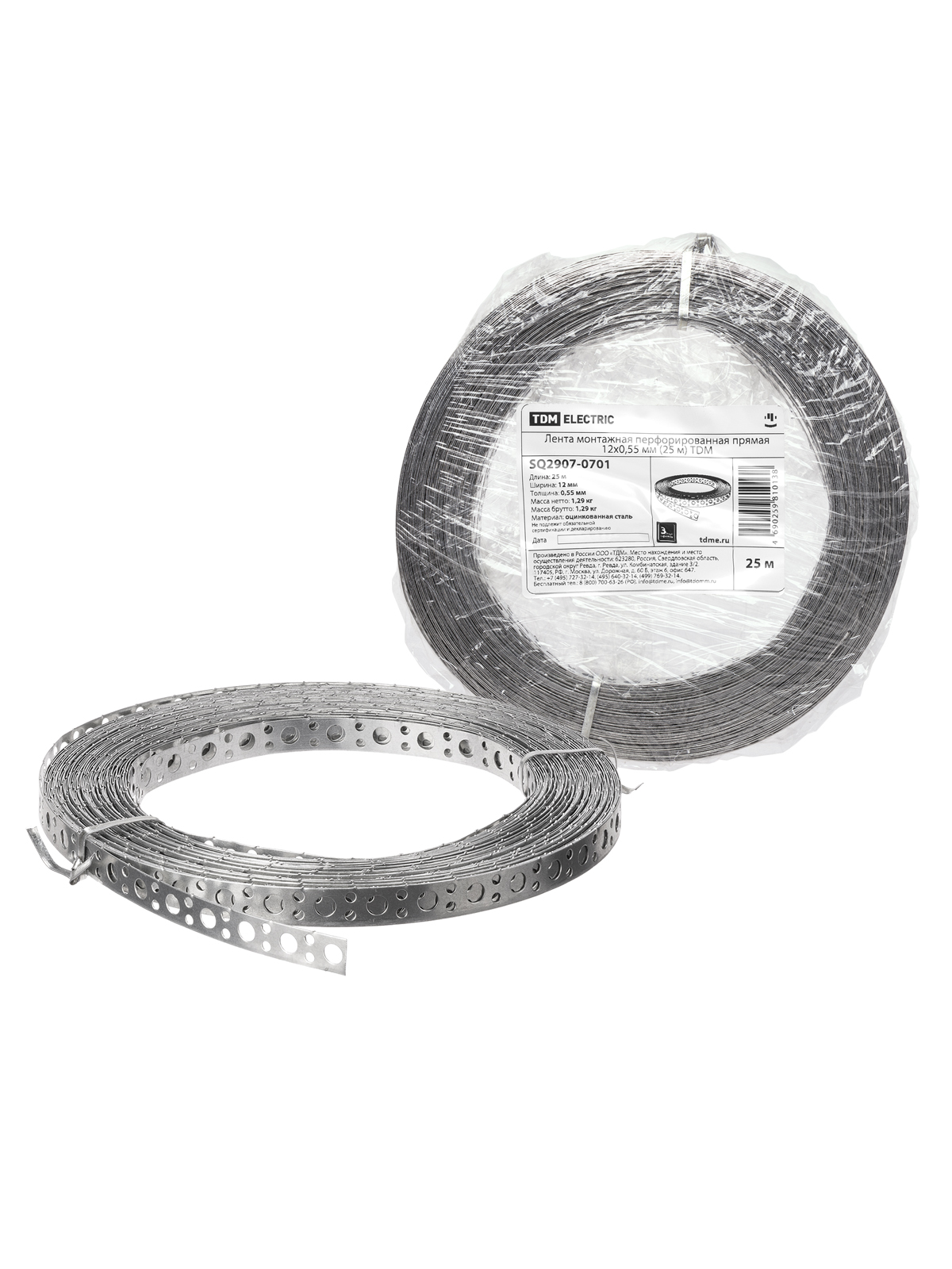 Наименование: Лента монтажная перфорированная прямая 12x0,55 мм (25 м) TDM