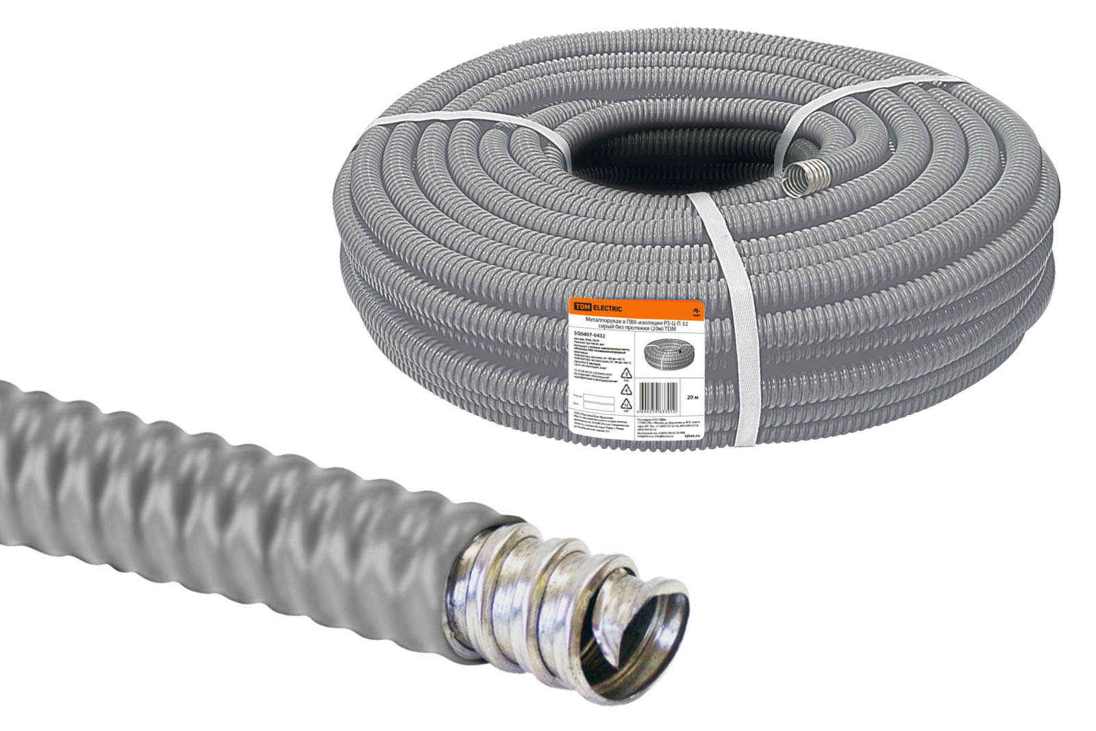 Наименование: Металлорукав в ПВХ-изоляции РЗ-Ц-П 32 серый без протяжки (20м) TDM