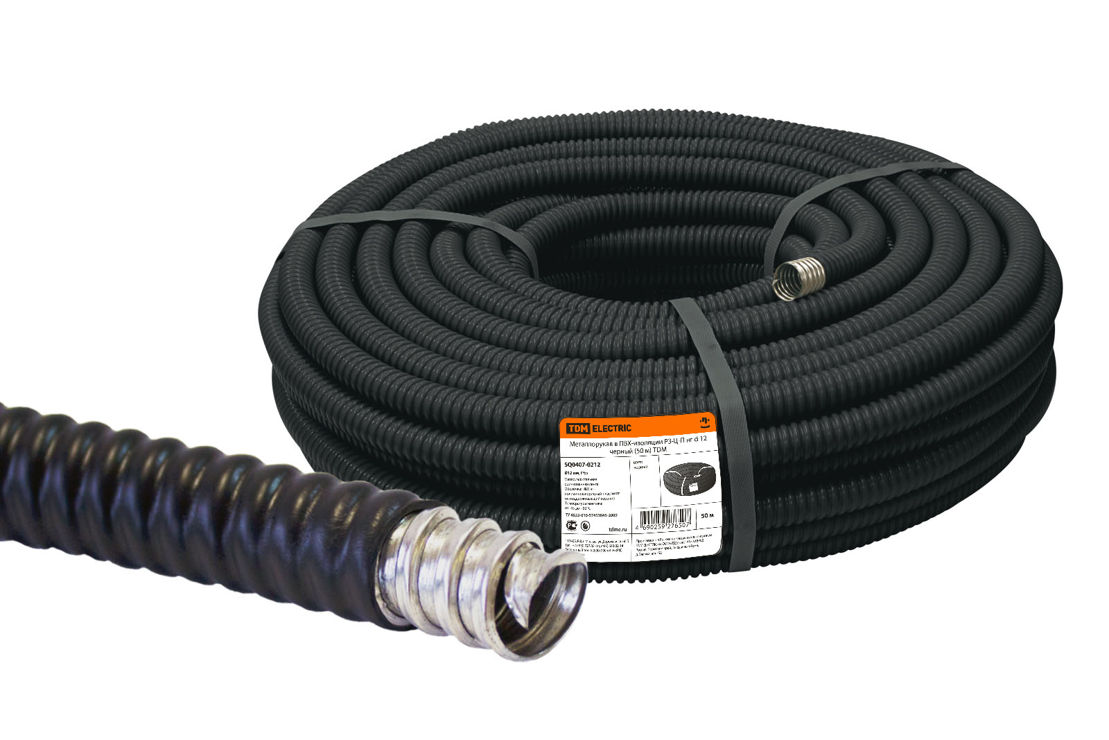 Наименование: Металлорукав в ПВХ-изоляции РЗ-Ц-П d 12 черный без протяжки (50м) TDM