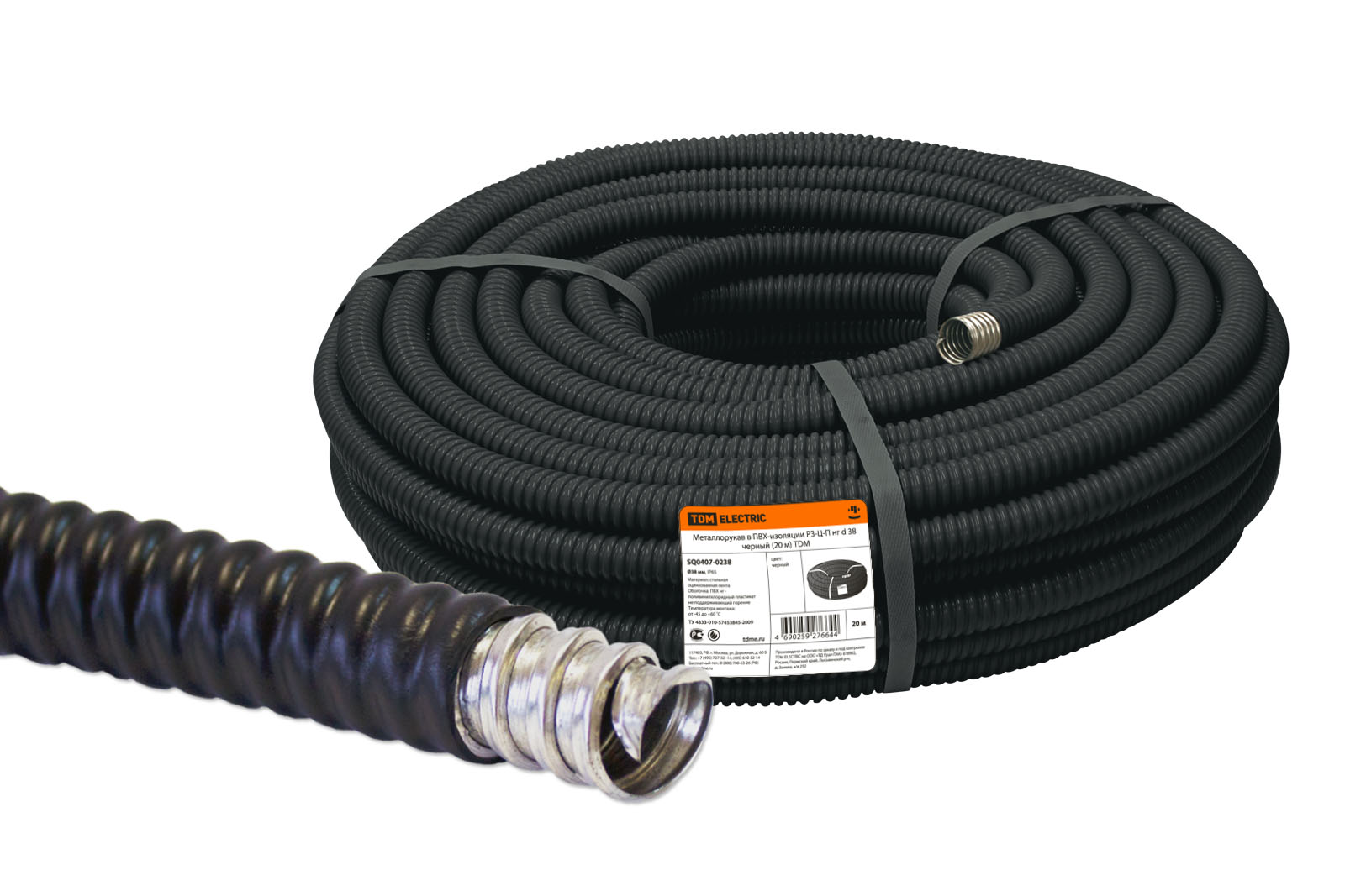 Наименование: Металлорукав в ПВХ-изоляции РЗ-Ц-П d 38 черный без протяжки (20м) TDM