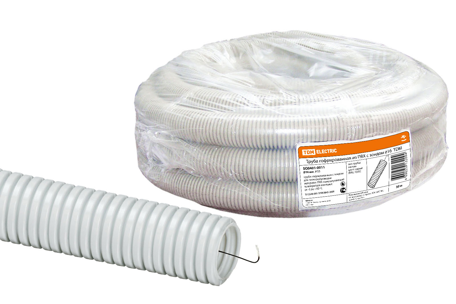 Труба гофрированная ПВХ d 16 с зондом (50 м) легкая TDM