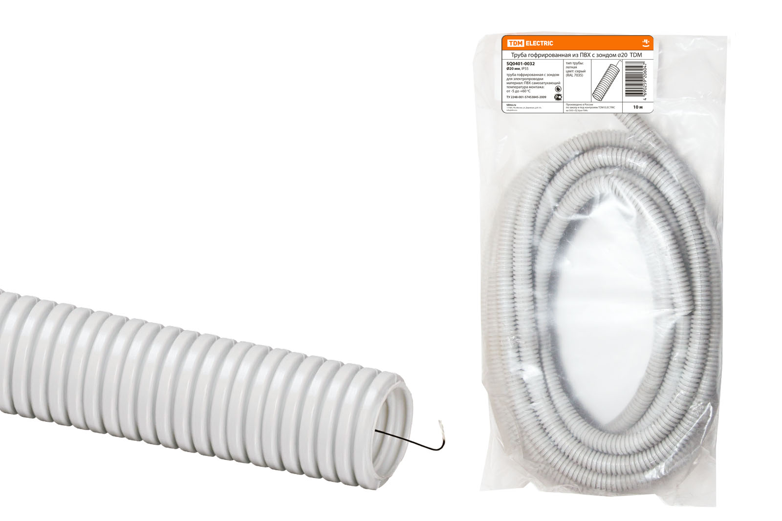 Труба гофрированная ПВХ d 20 с зондом (10 м) легкая TDM