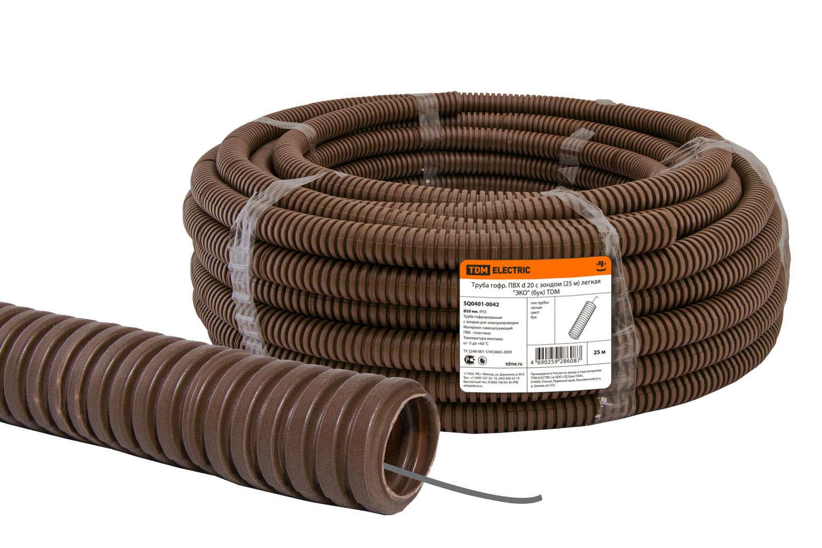 Наименование: Труба гофрированная ПВХ d 20 с зондом (25 м) легкая "ЭКО" (бук) TDM