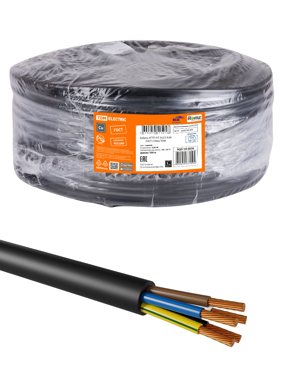 Наименование: Кабель КГТП-ХЛ 5х2,5(N,PE)-0,66 ГОСТ (100м) TDM