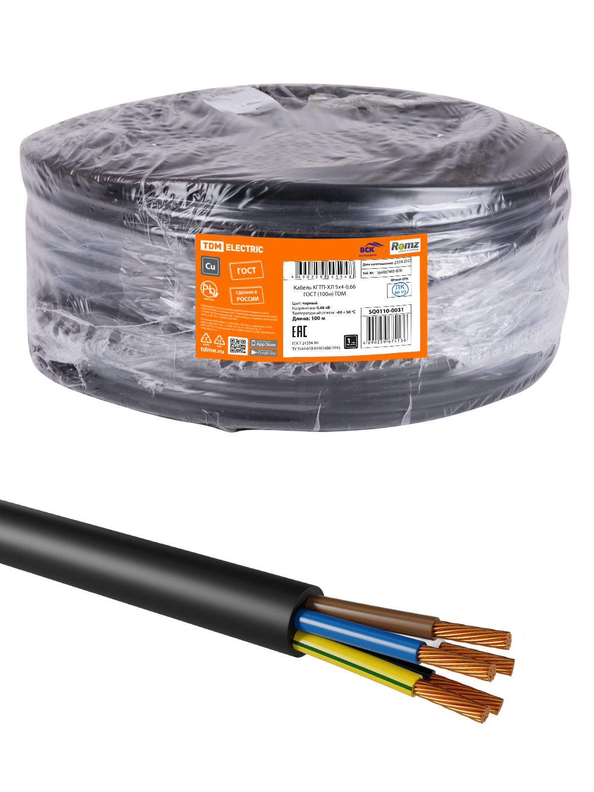Наименование: Кабель КГТП-ХЛ 5х4-0,66 ГОСТ (100м) TDM