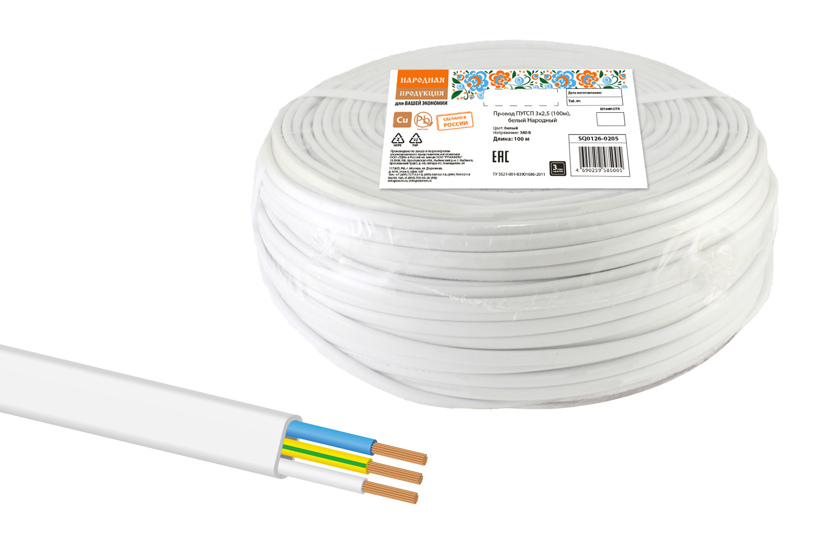 Провод ПУГСП 3х2,5 (100м), белый Народный