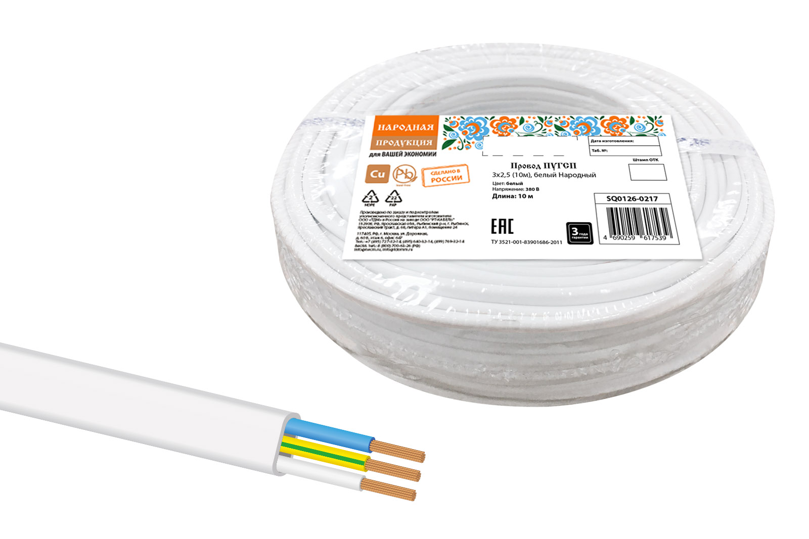 Наименование: Провод ПУГСП 3х2,5 (10м), белый Народный