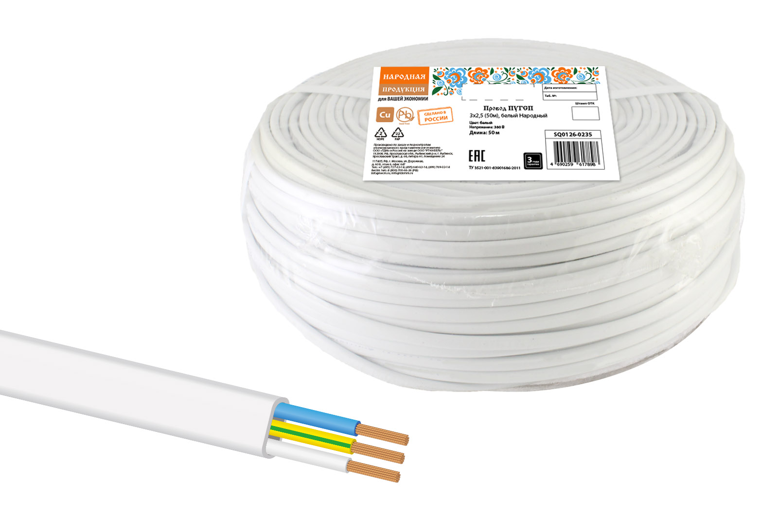 Провод ПУГСП 3х2,5 (50м), белый Народный