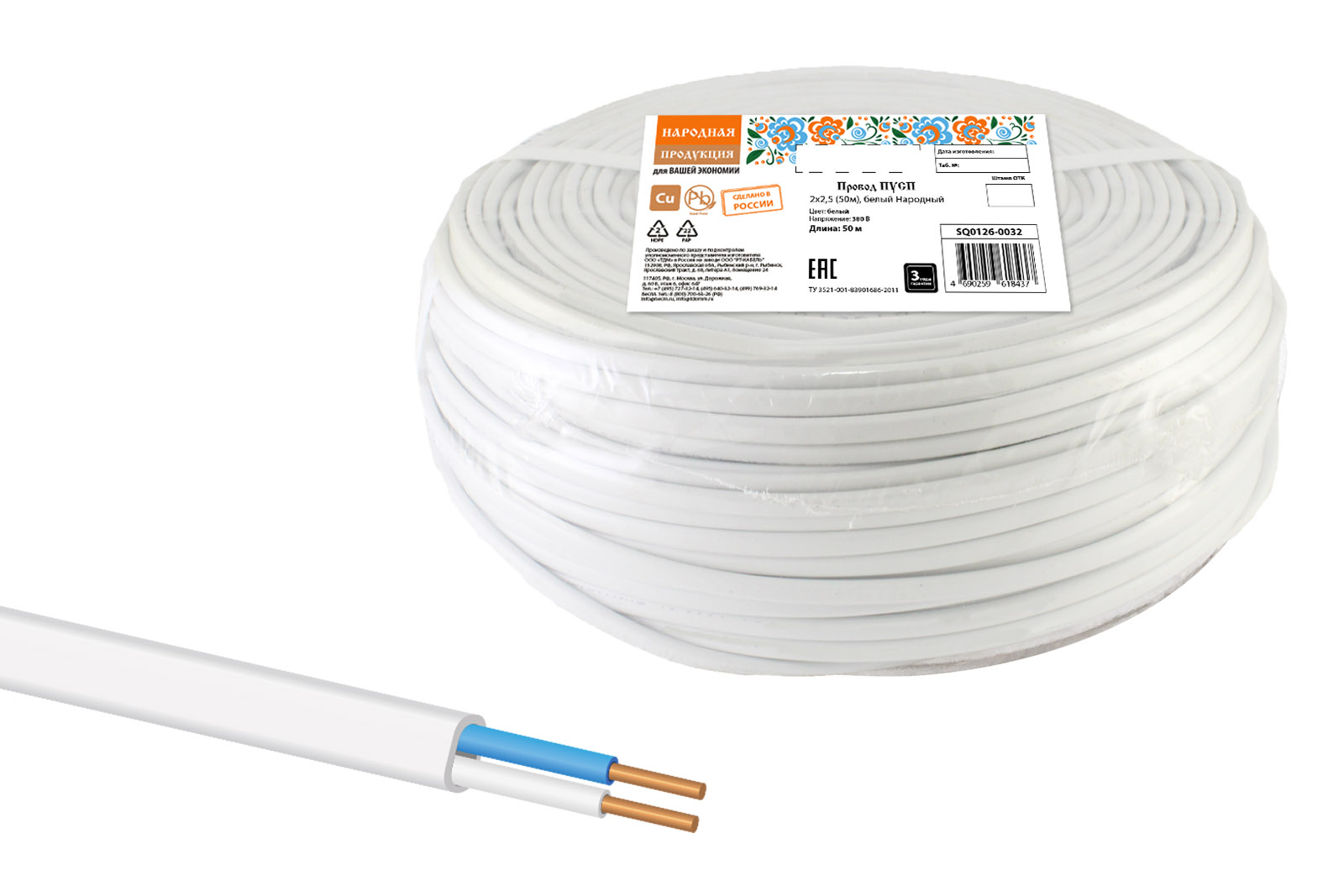 Провод ПУСП 2х2,5 (50м), белый Народный