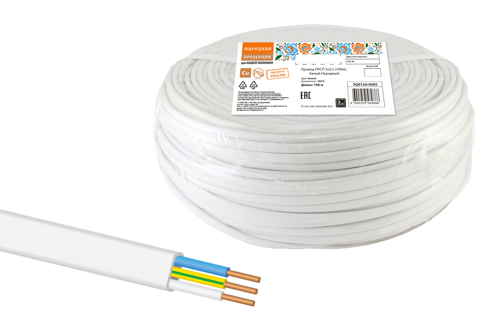 Наименование: Провод ПУСП 3х2,5 (100м), белый Народный