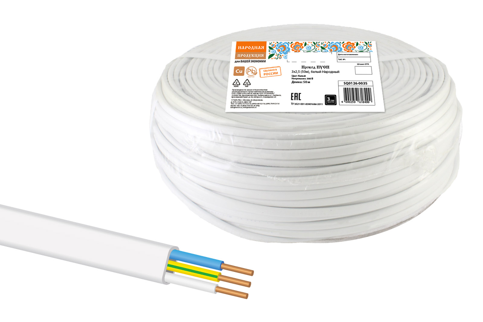 Провод ПУСП 3х2,5 (50м), белый Народный