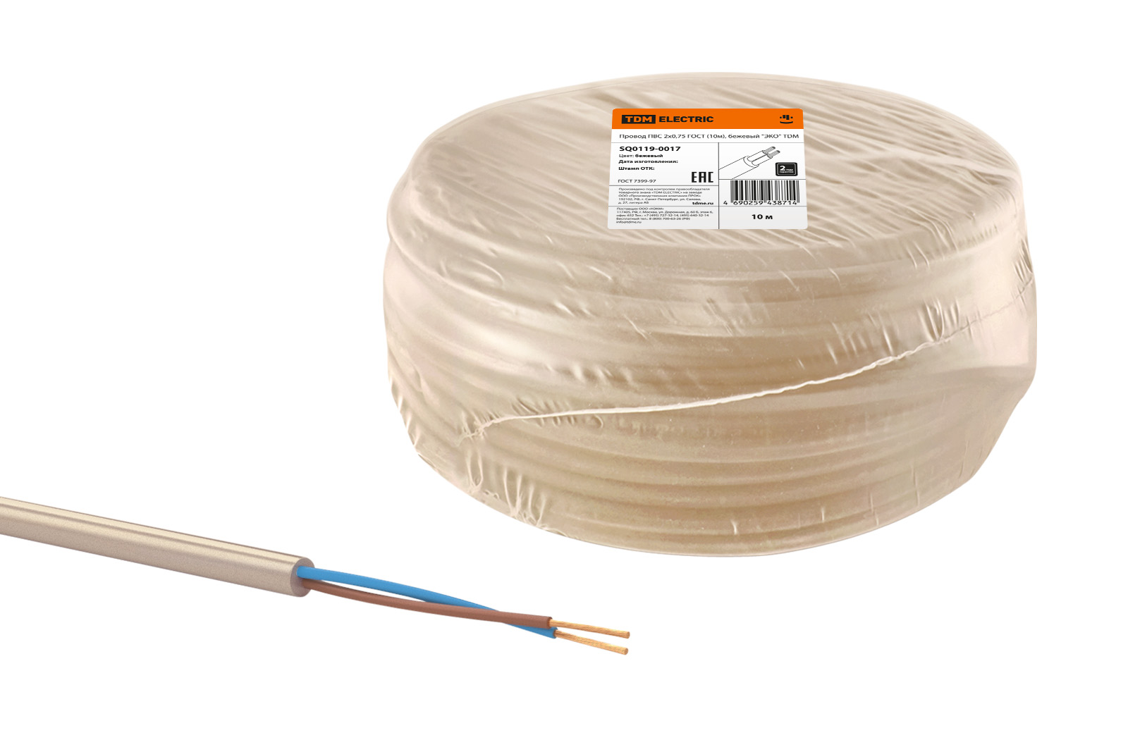 Наименование: Провод ПВС 2х0,75 ГОСТ (10м), бежевый "ЭКО" TDM