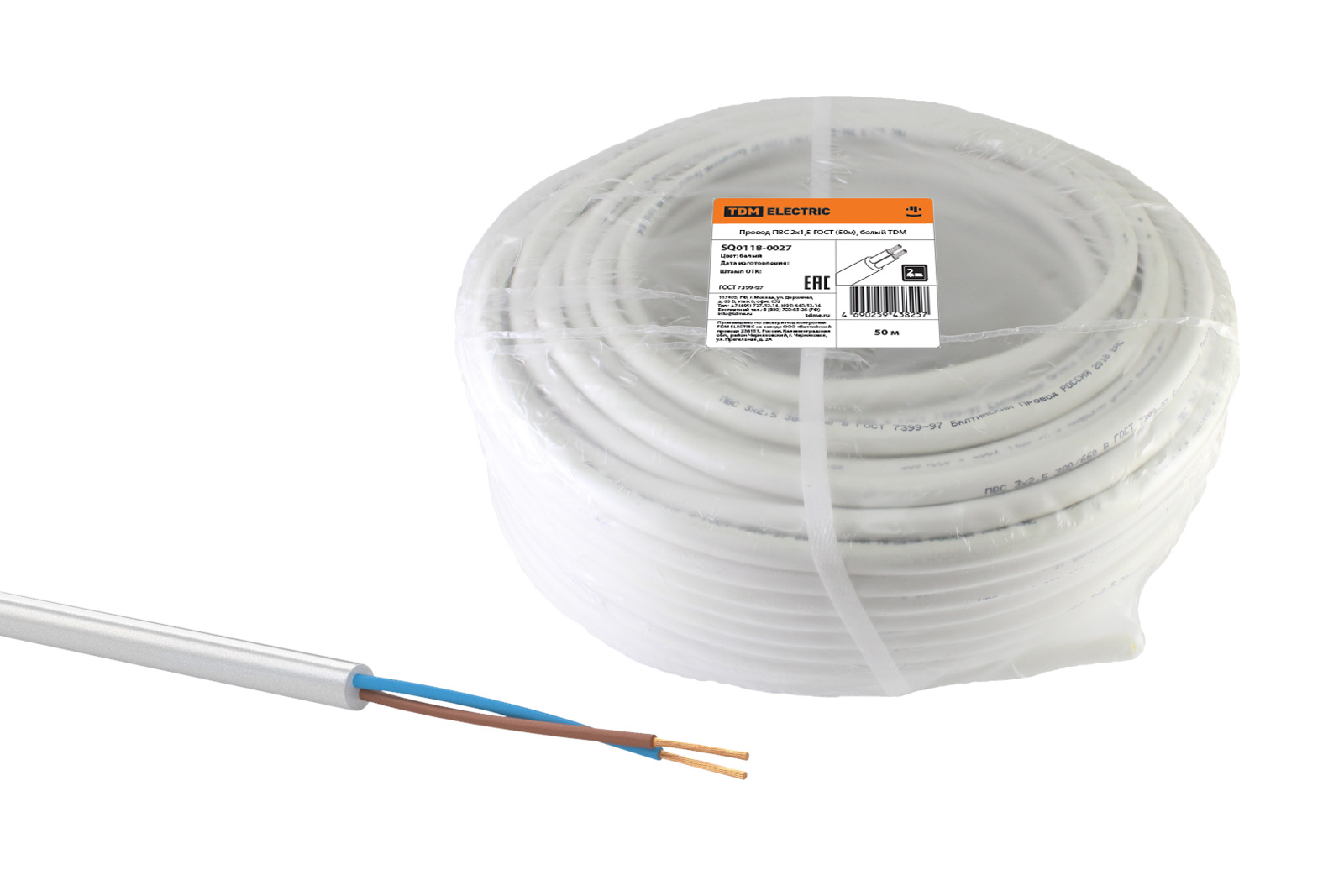 Наименование: Провод ПВС 2х1,5 ГОСТ (50м), белый TDM