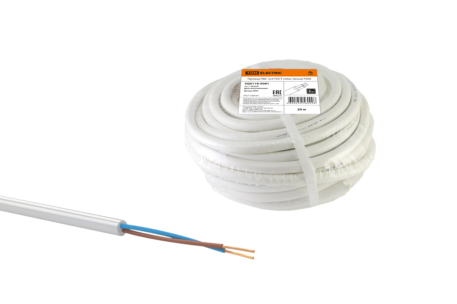 Наименование: Провод ПВС 2х4 ГОСТ (20м), белый TDM