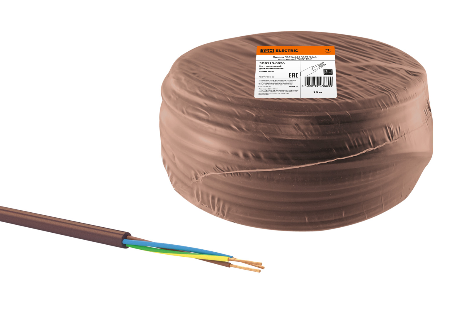 Провод ПВС 3х0,75 ГОСТ (10м), коричневый "ЭКО" TDM