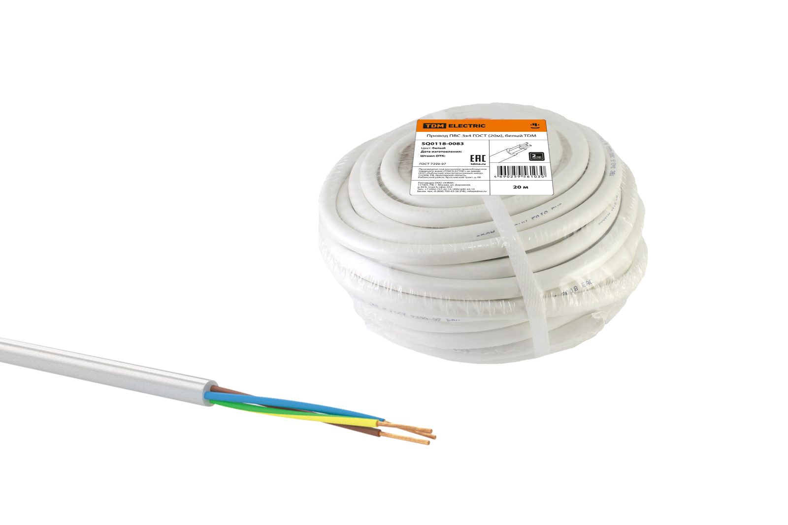 Провод ПВС 3х4 ГОСТ (20м), белый TDM