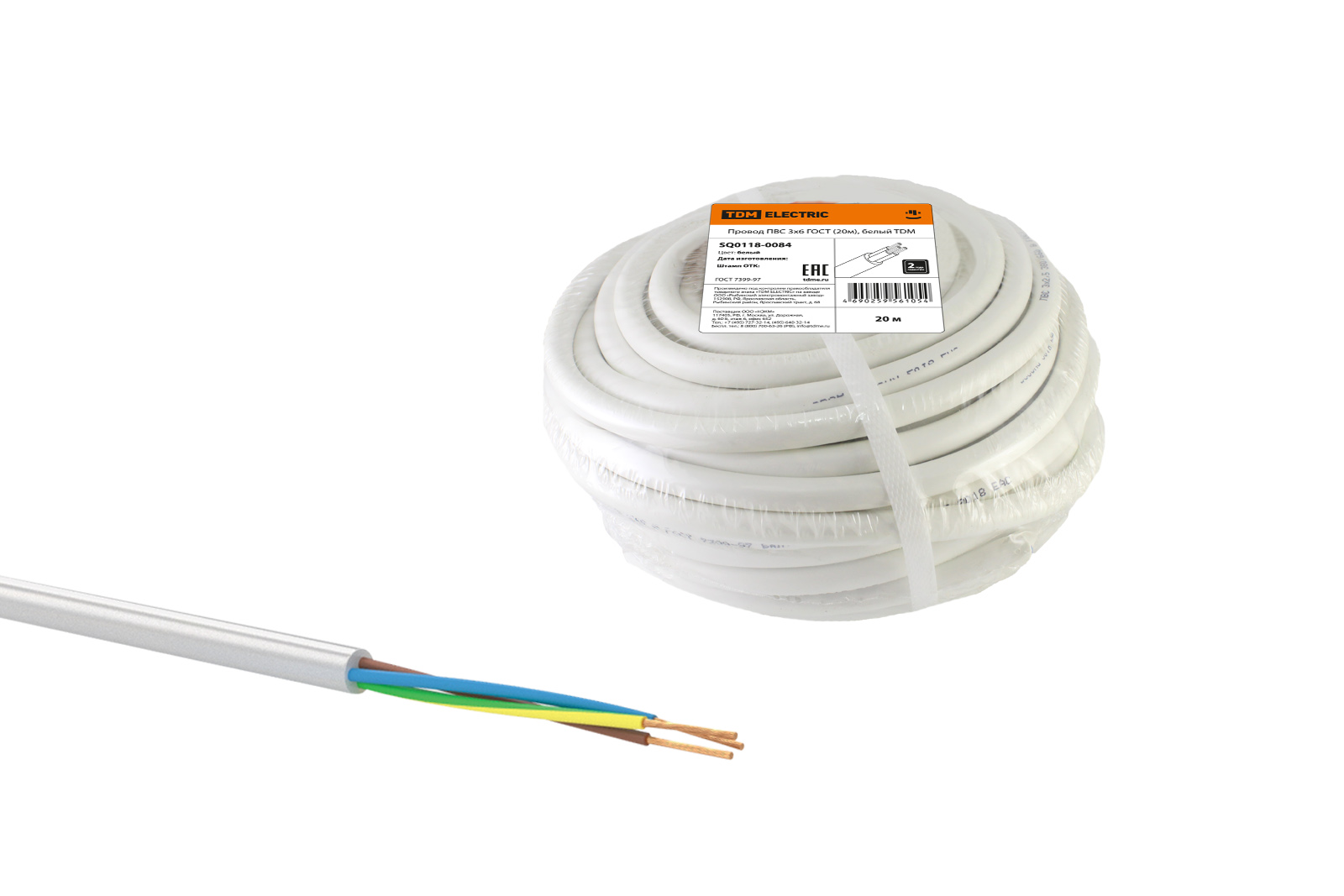 Наименование: Провод ПВС 3х6 ГОСТ (20м), белый TDM