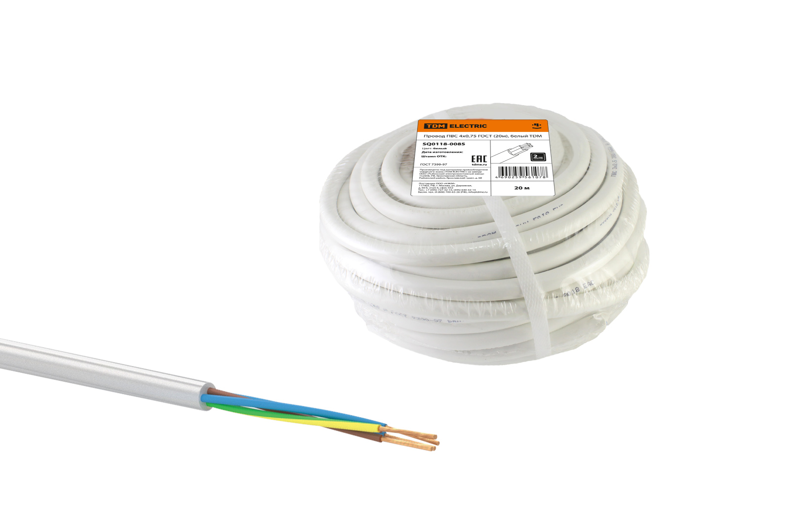 Наименование: Провод ПВС 4х0,75 ГОСТ (20м), белый TDM