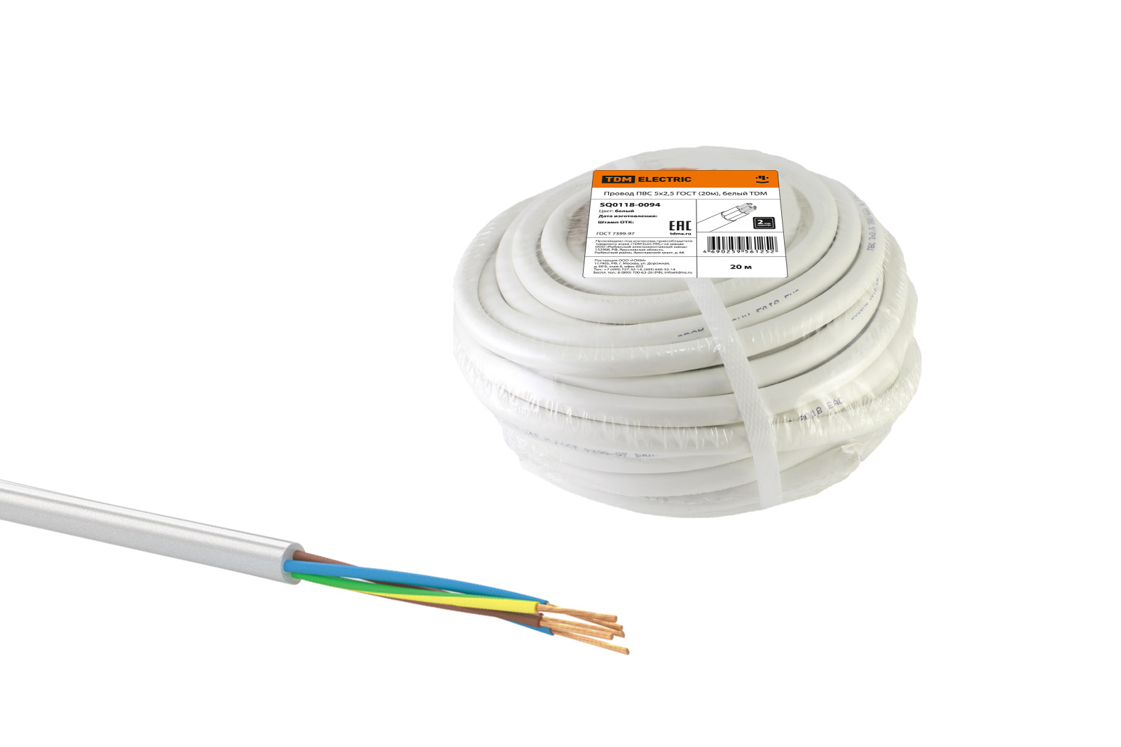 Провод ПВС 5х2,5 ГОСТ (20м), белый TDM