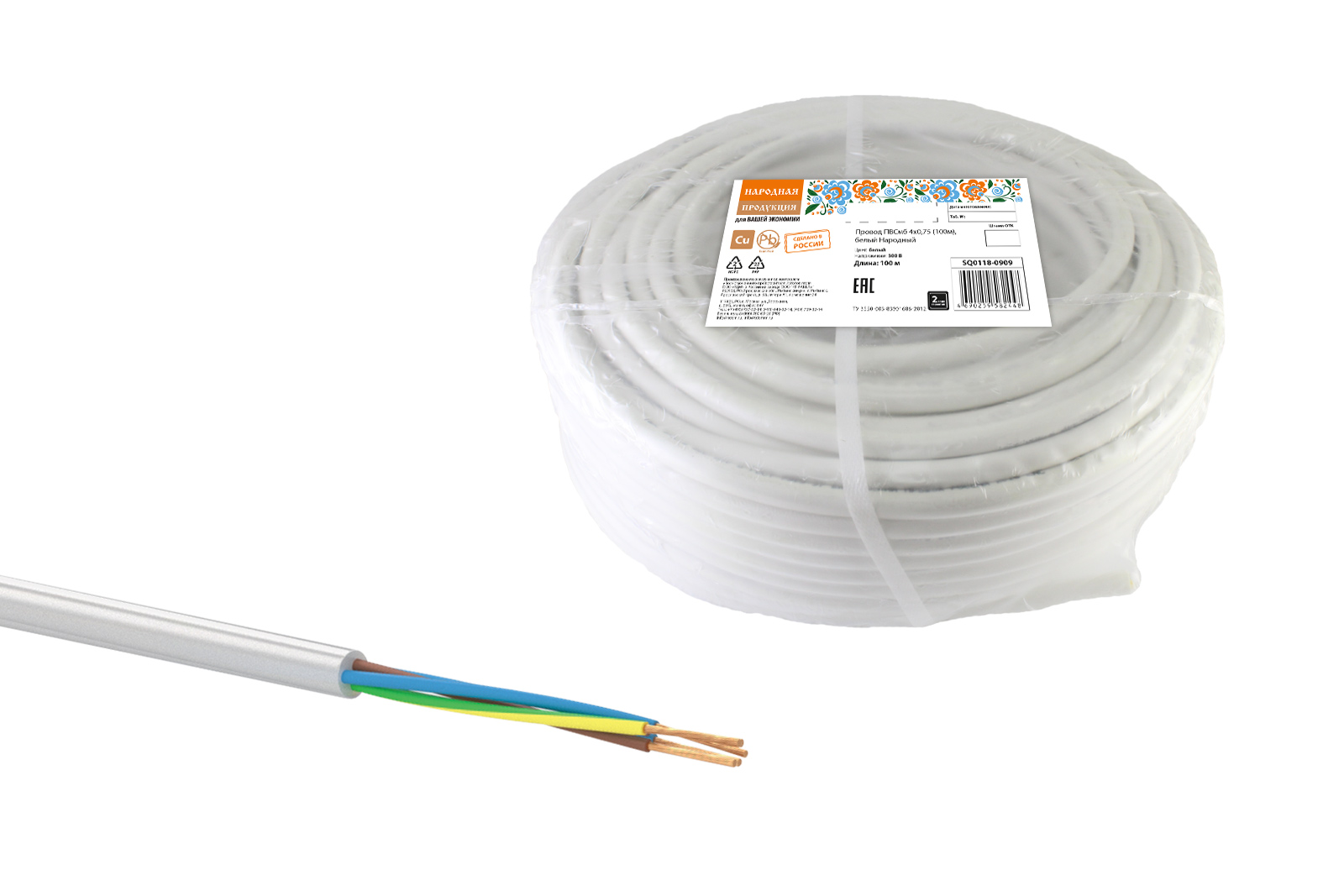Наименование: Провод ПВСмб 4х0,75 (100м), белый Народный