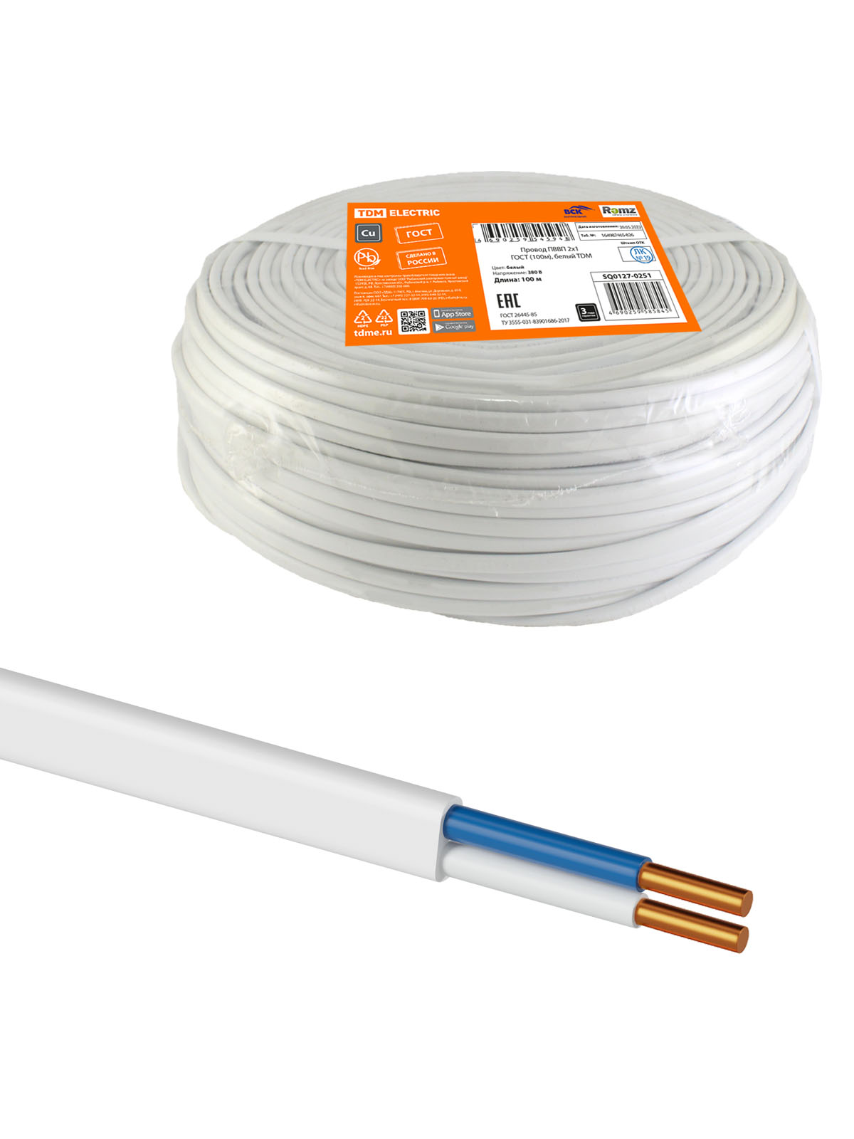 Наименование: Провод ПВВП 2х1 ГОСТ (100м), белый TDM
