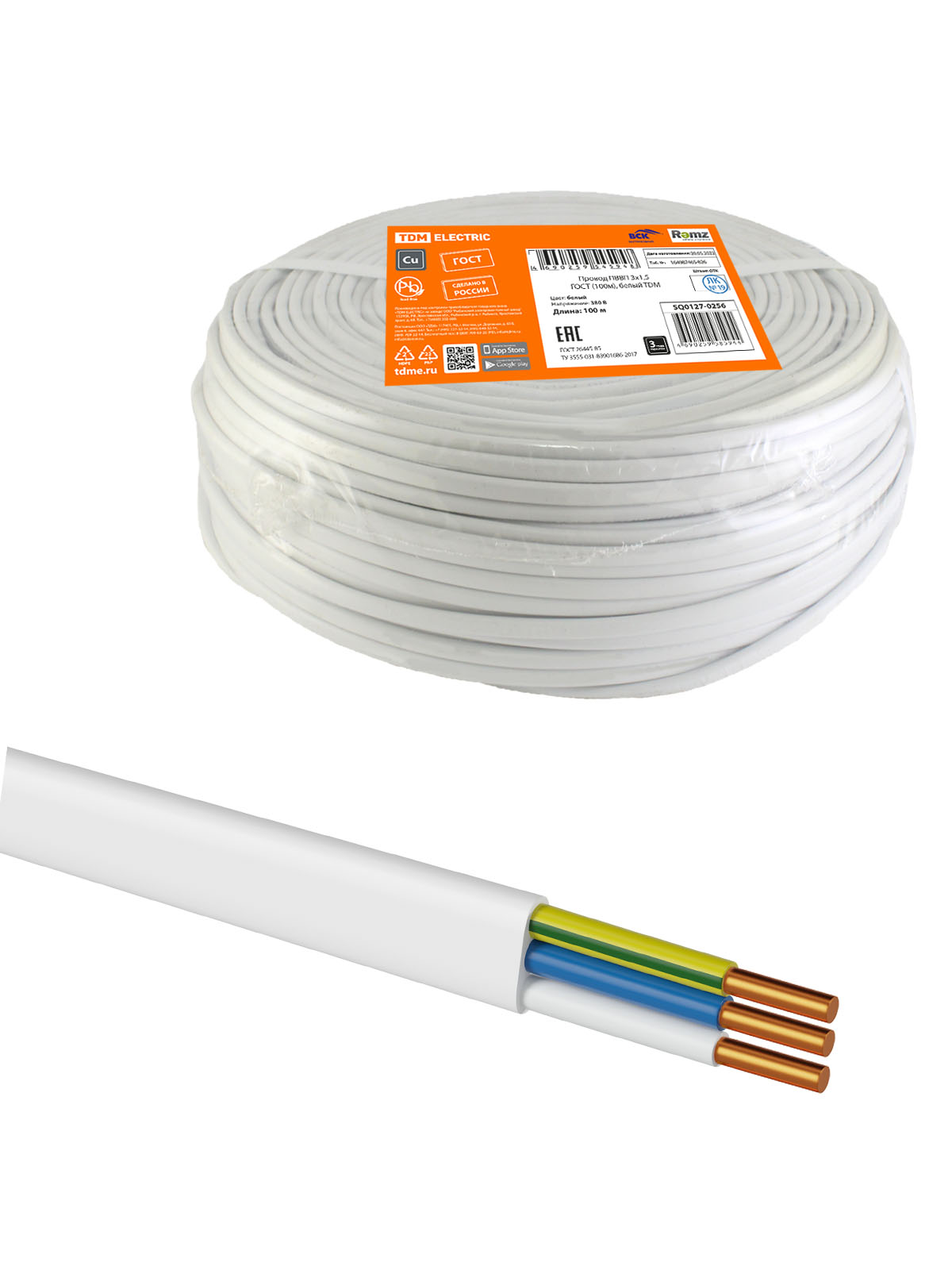 Наименование: Провод ПВВП 3х1,5 ГОСТ (100м), белый TDM