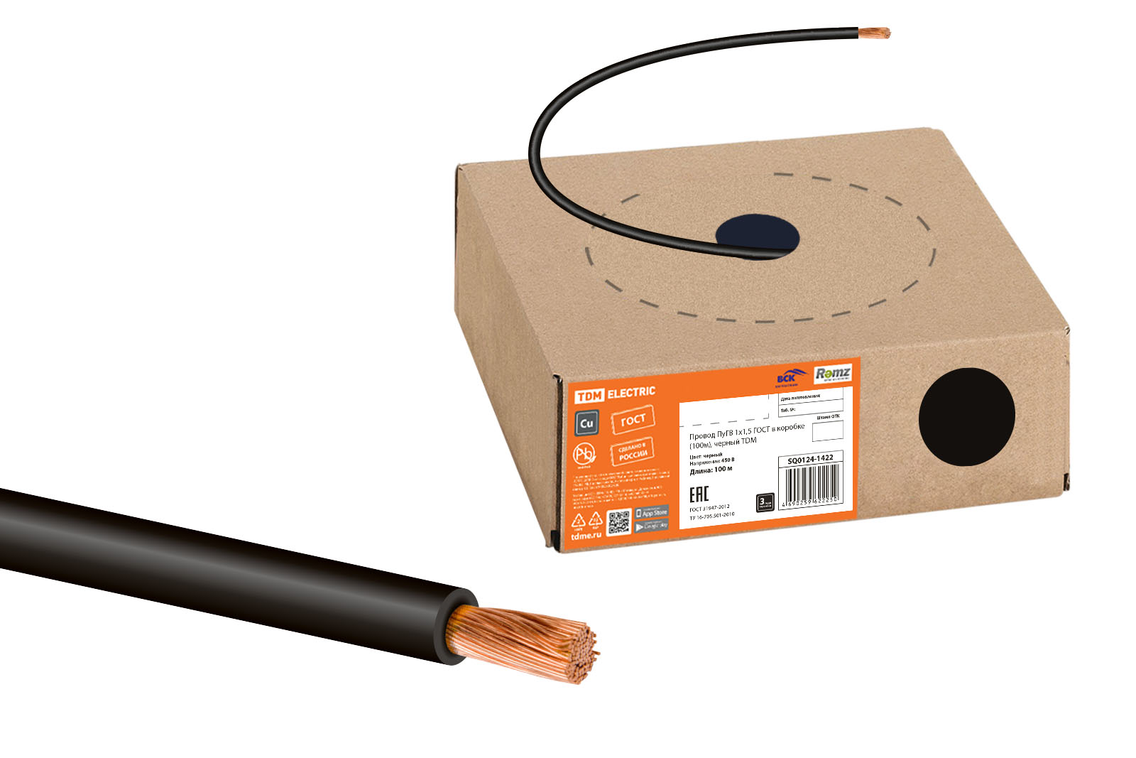 Наименование: Провод ПуГВ 1х1,5 ГОСТ в коробке (100м), черный TDM