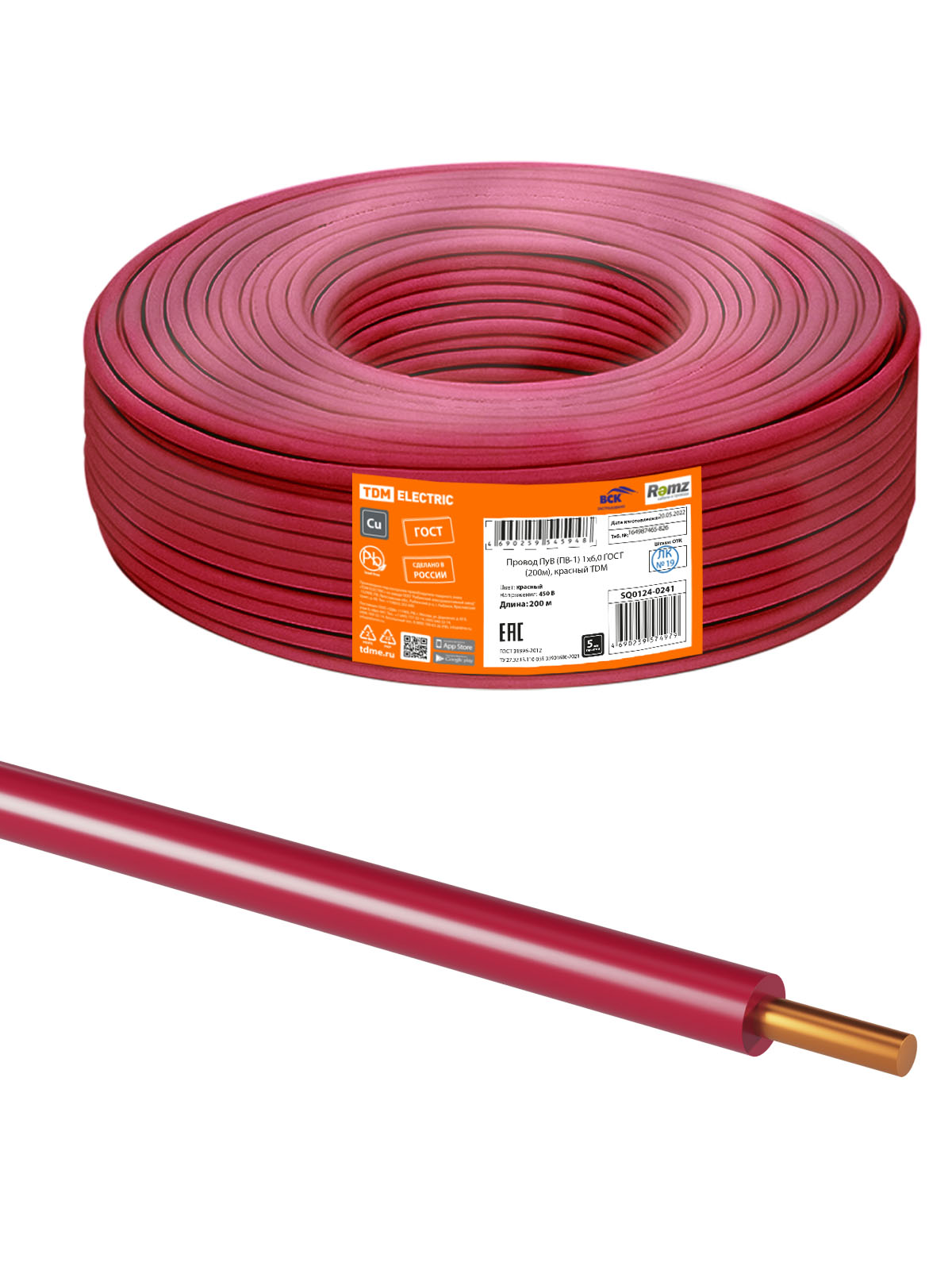 Наименование: Провод ПуВ (ПВ-1) 1х6,0 ГОСТ (200м), красный TDM
