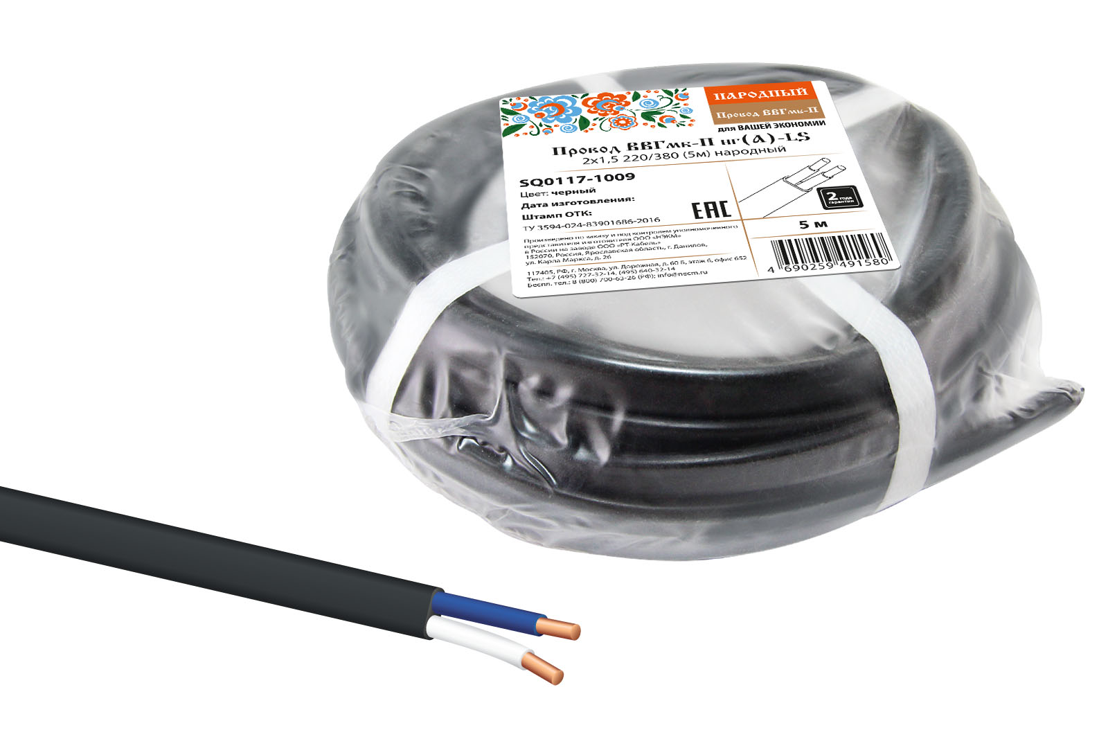 Наименование: Провод ВВГмб-П нг(А)-LS 2х1,5 220/380 (5м) Народный
