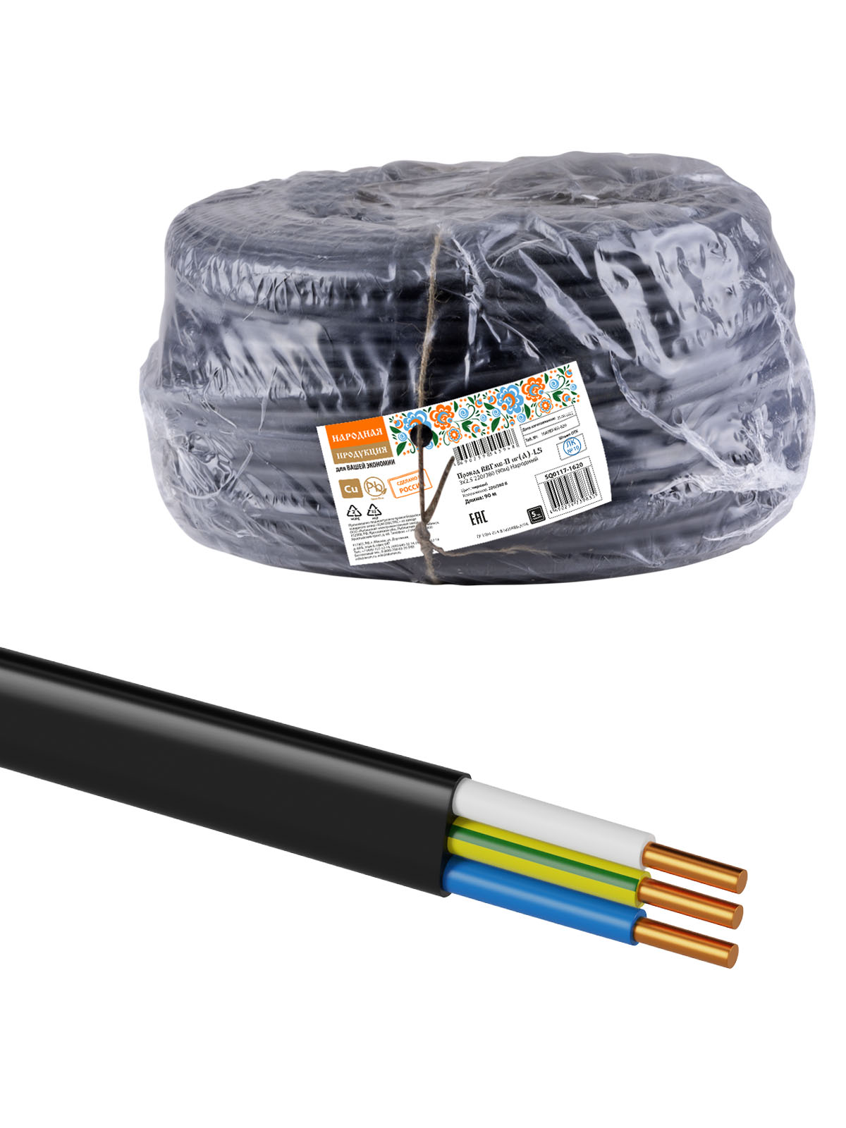 Наименование: Провод ВВГмб-П нг(А)-LS 3х2,5 220/380 (90м) Народный