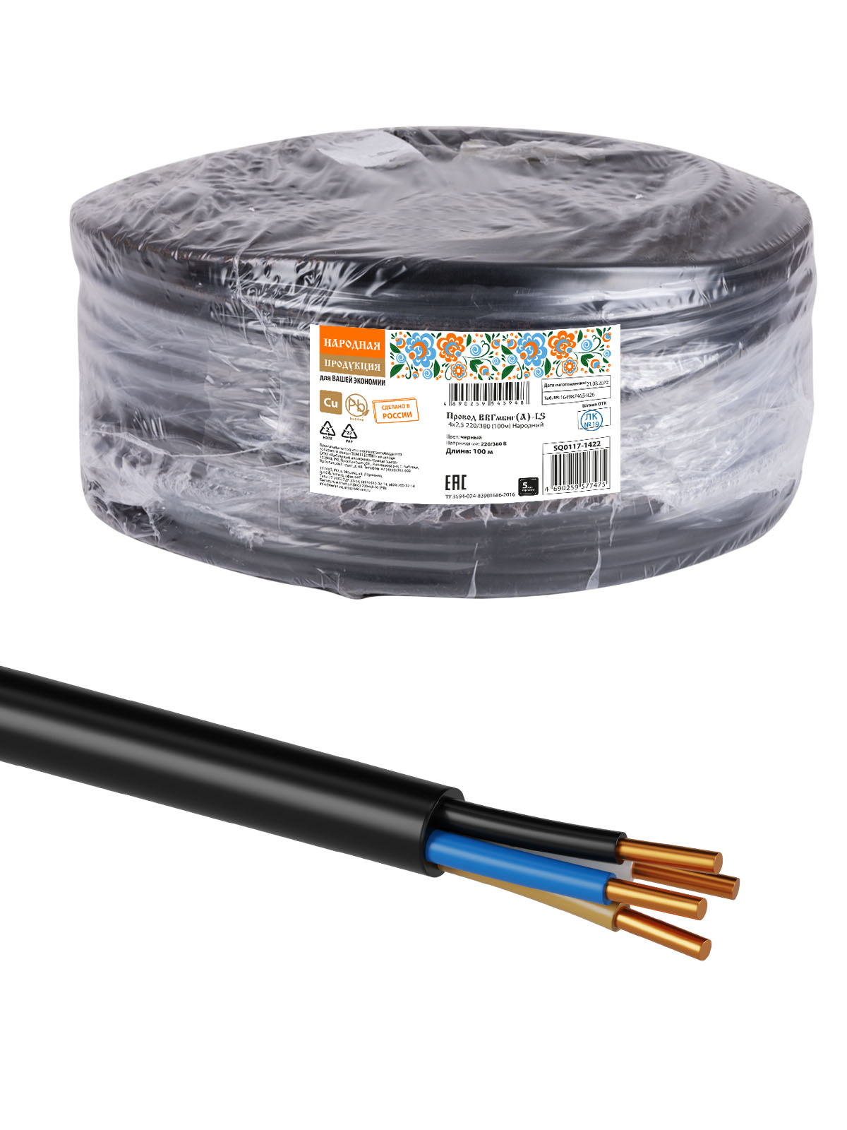 Провод ВВГмбнг(А)-LS 4х2,5 220/380 (100м) Народный
