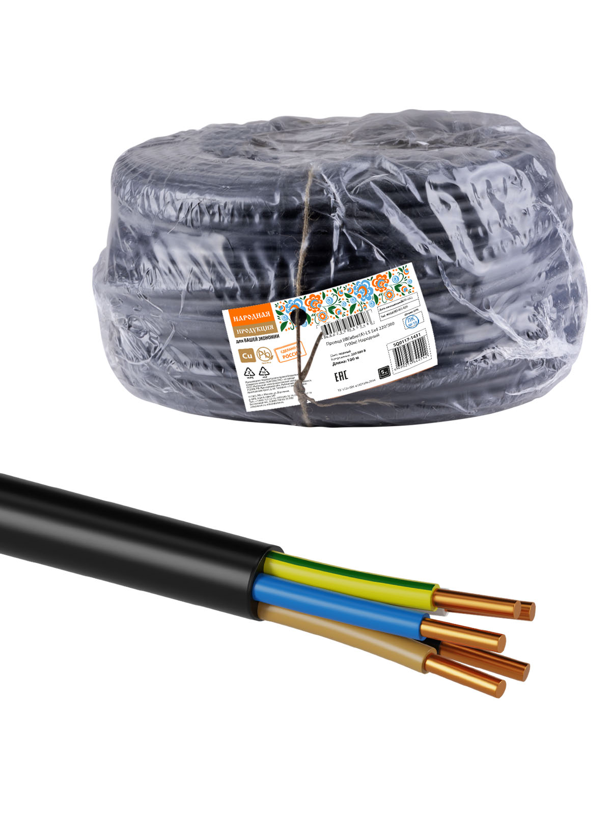 Наименование: Провод ВВГмбнг(А)-LS 5х4 220/380 (100м) Народный